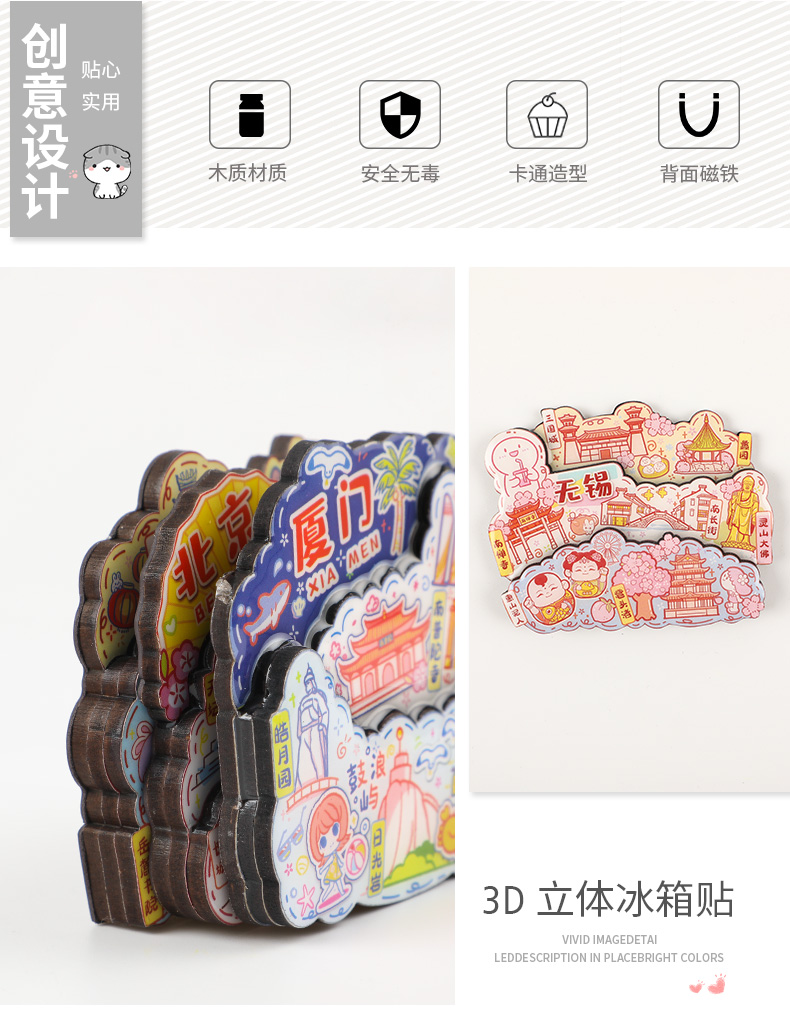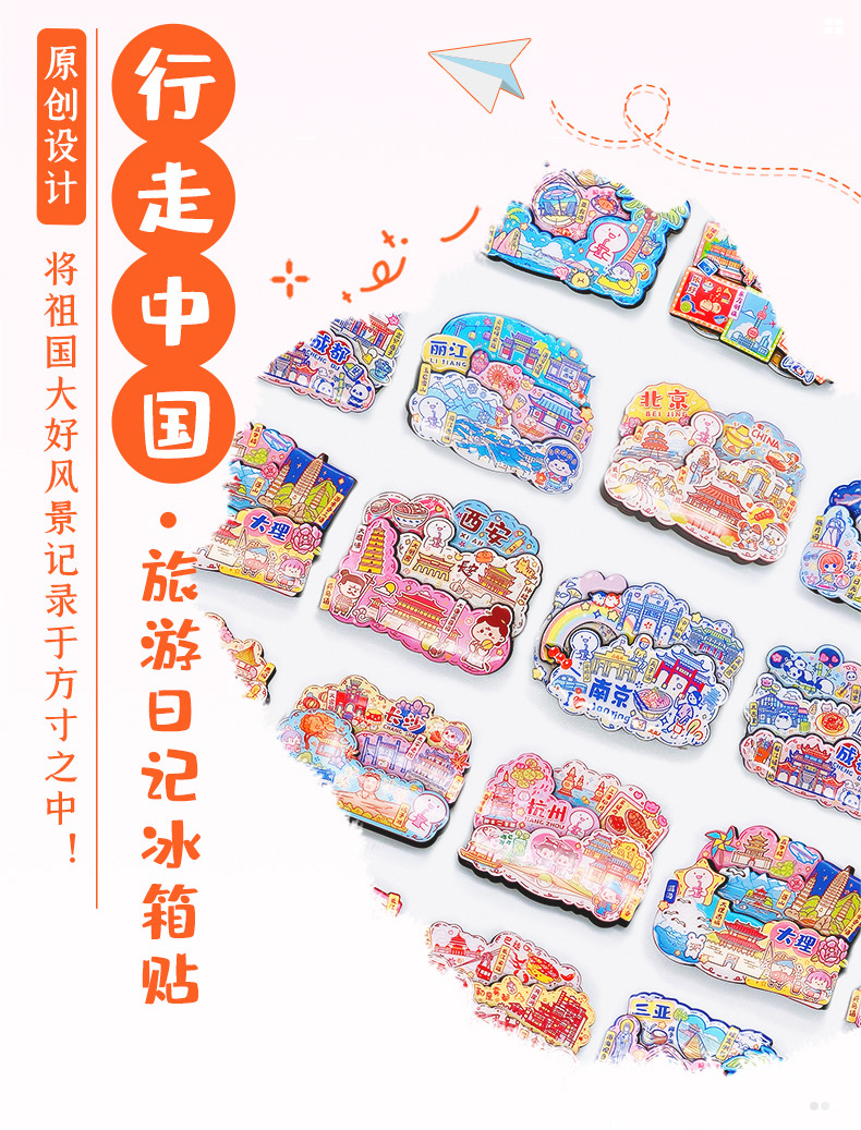 중국 도시 냉장고 스티커 상하이 우한 난징 윈난 관광 명소 기념품 웨이하이 톈진 다윤