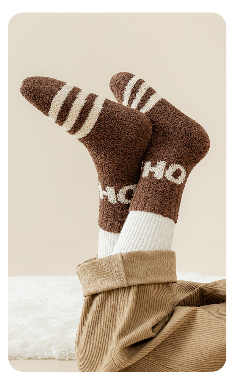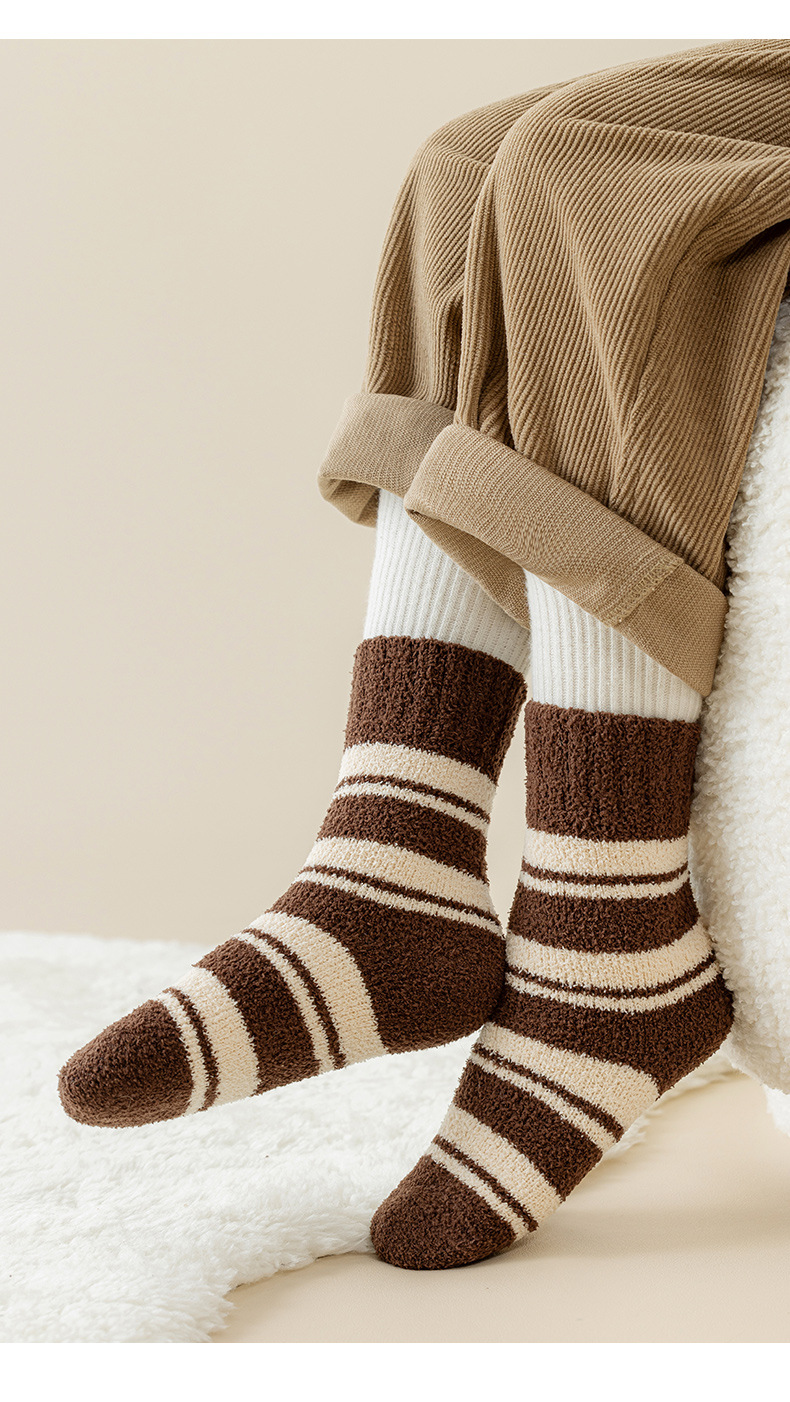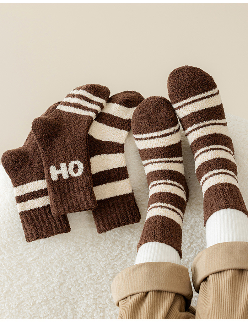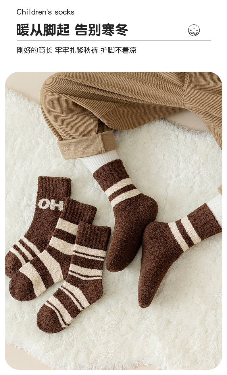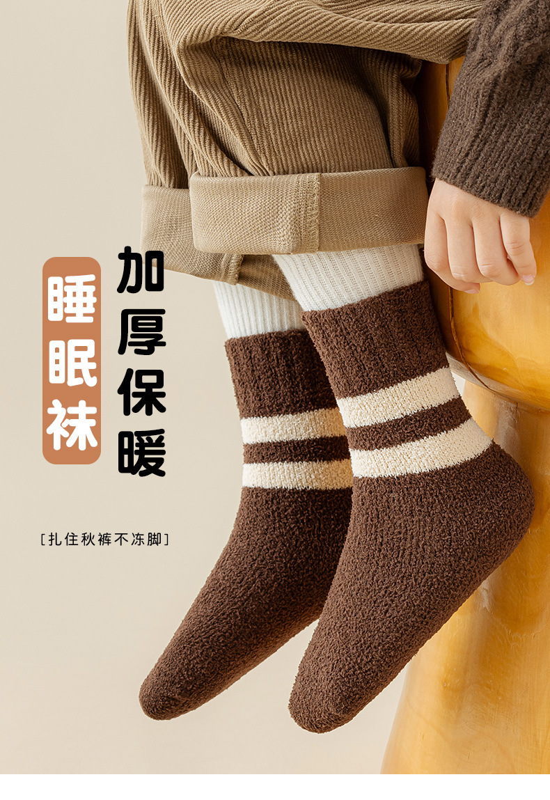 어린이 양말 겨울 두꺼운 기모 따뜻한 줄무늬 튜브 양말 열 저장 소년 소녀 수면 바닥 양말 한국어 버전