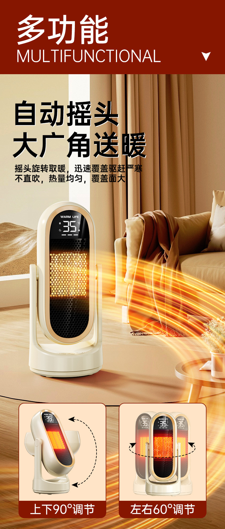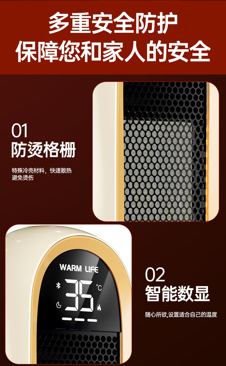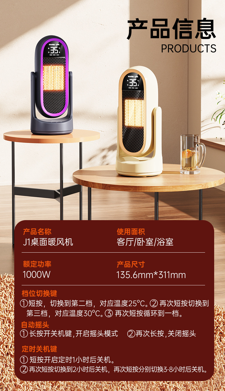 새로운 J1 히터 가정용 뜨거운 공기 PTC 전기 난방 데스크탑 난방 그래 핀 히터 자동 흔들림 헤드