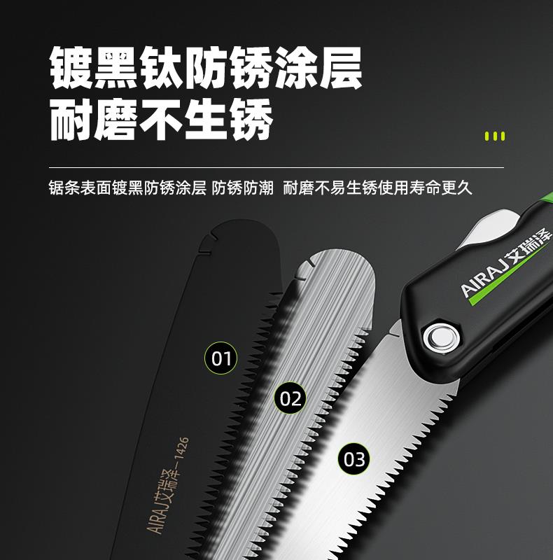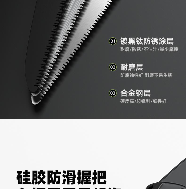 • [대형 구매시 소형 증정] 흑색 티타늄 도금 SK9 스테인레스 스틸 접이식 톱(대형)