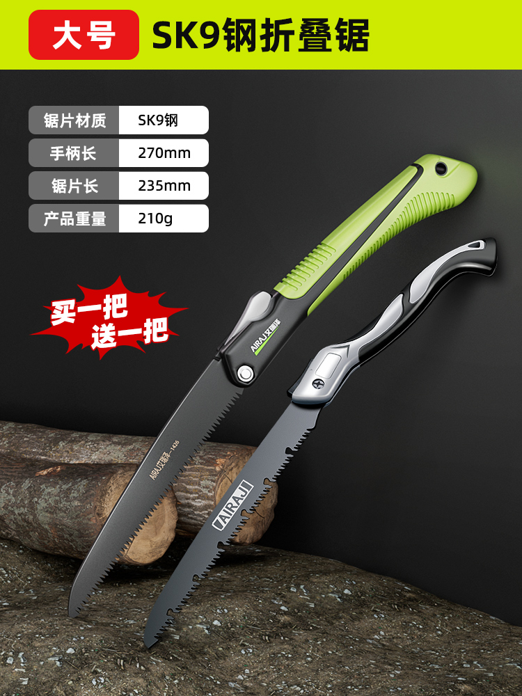 • [대형 구매시 소형 증정] 흑색 티타늄 도금 SK9 스테인레스 스틸 접이식 톱