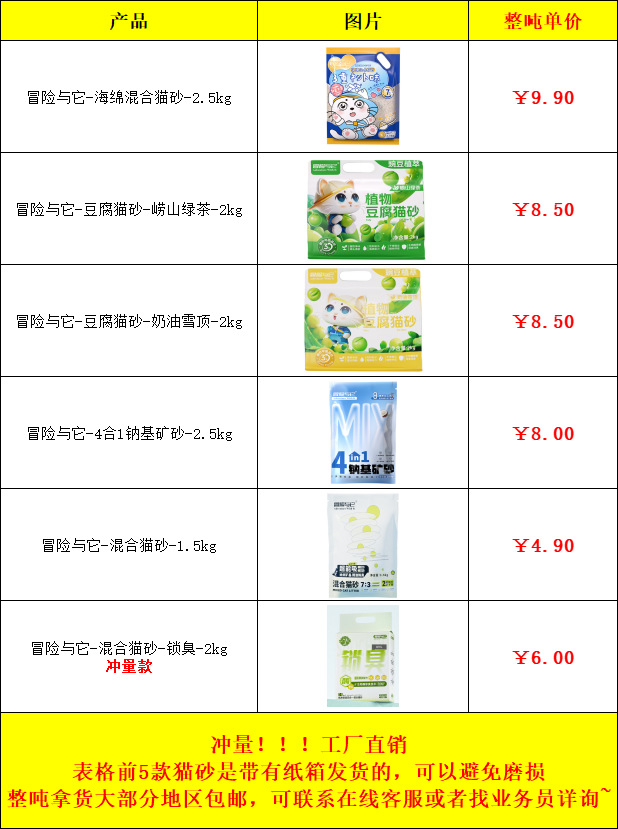 어드벤처 앤 더 캣츠 두부 고양이 모래 6L 벤토나이트 혼합 먼지 제거 탈취 나트륨 기반 미네랄 모래 고품질 도매스토어 가기