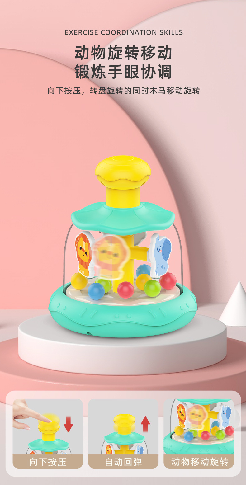 [우편] 어린이 퍼즐 프레스 회전 동물 점프 공 조기 교육 아기 진정 턴 음악 깨달음 장난감스토어 가기