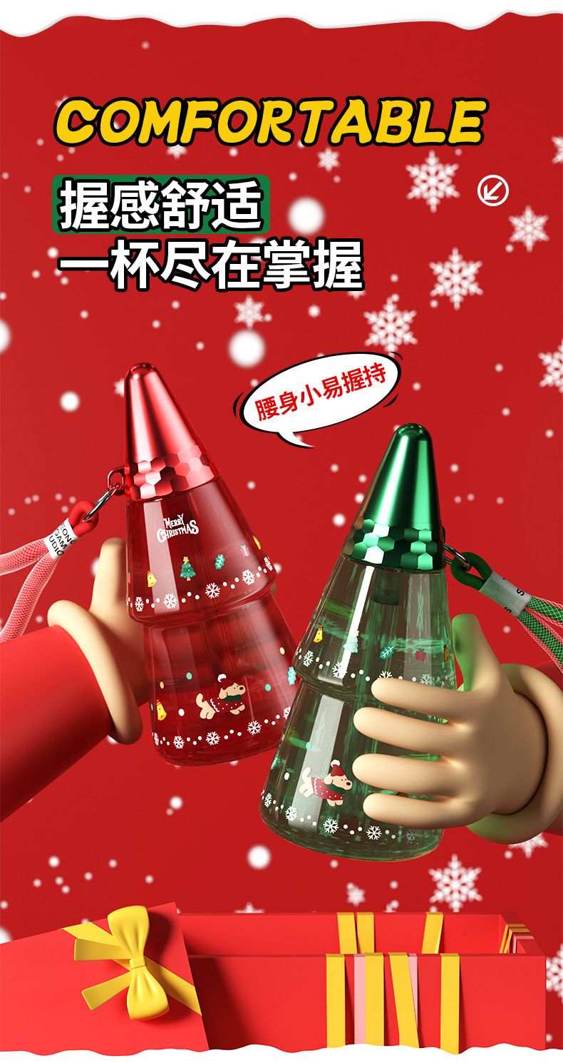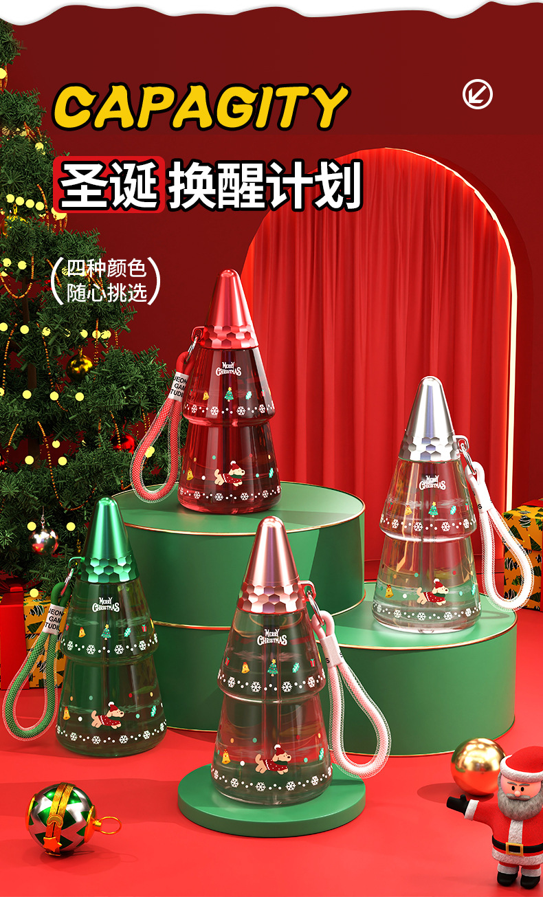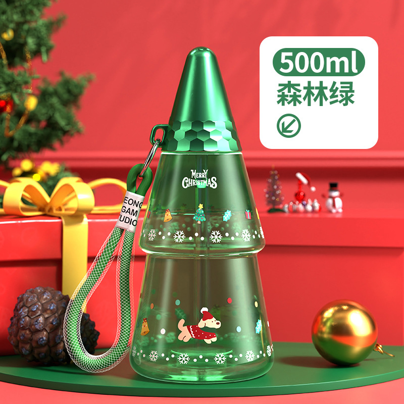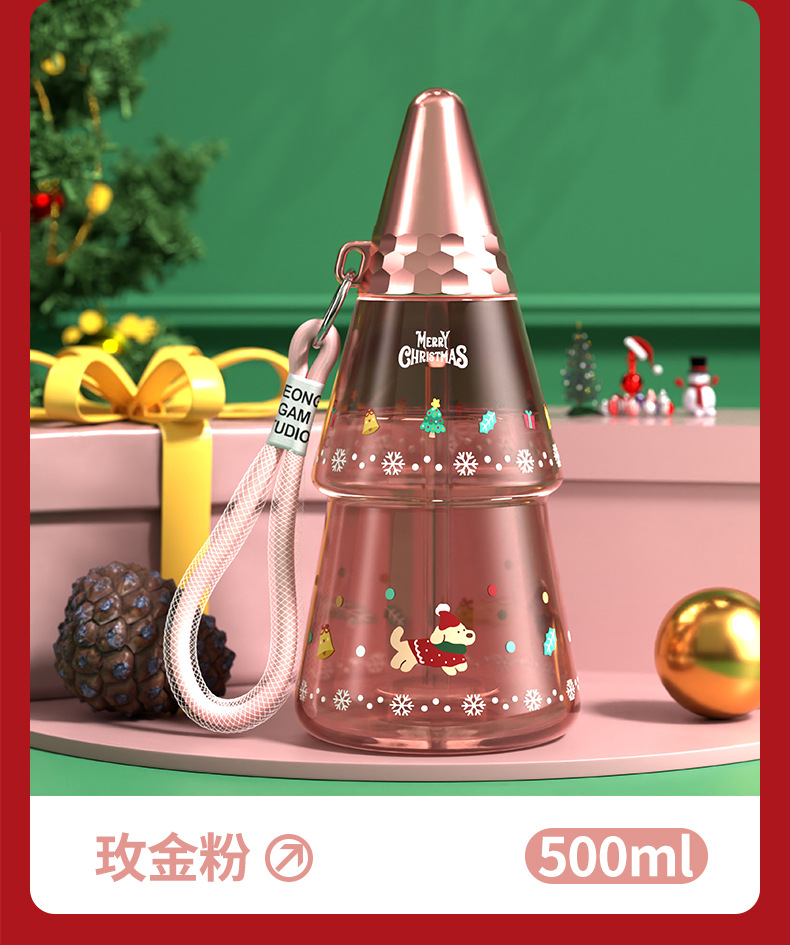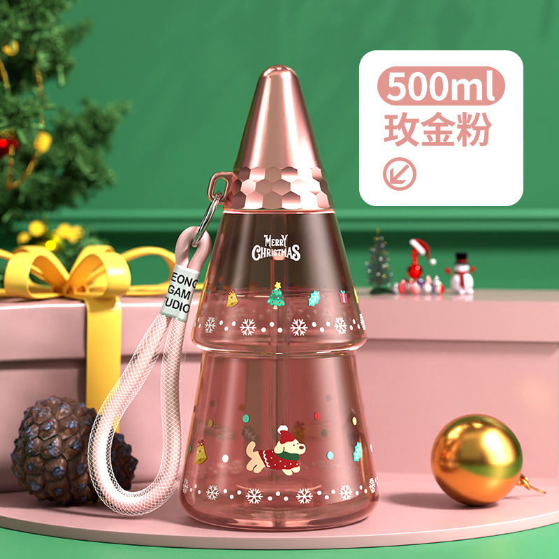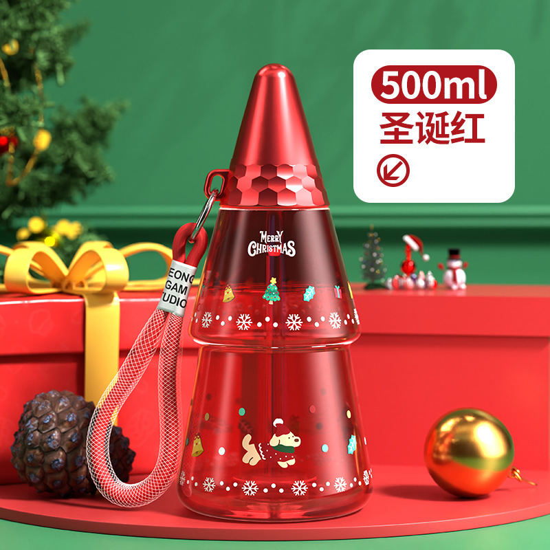 새로운 크리스마스 어린이 워터 컵 만화 플라스틱 컵 리프팅 학생 흡입 튜브 컵 남녀 야외 스포츠 물병