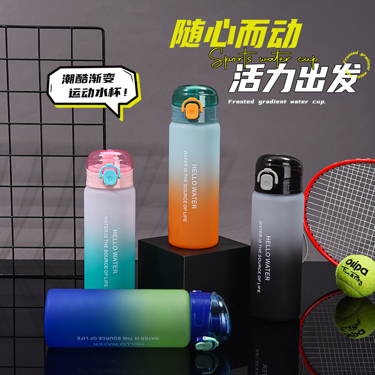 户外运动水杯大容量渐变色塑料杯高颜值便携杯子弹跳杯厂家批发
