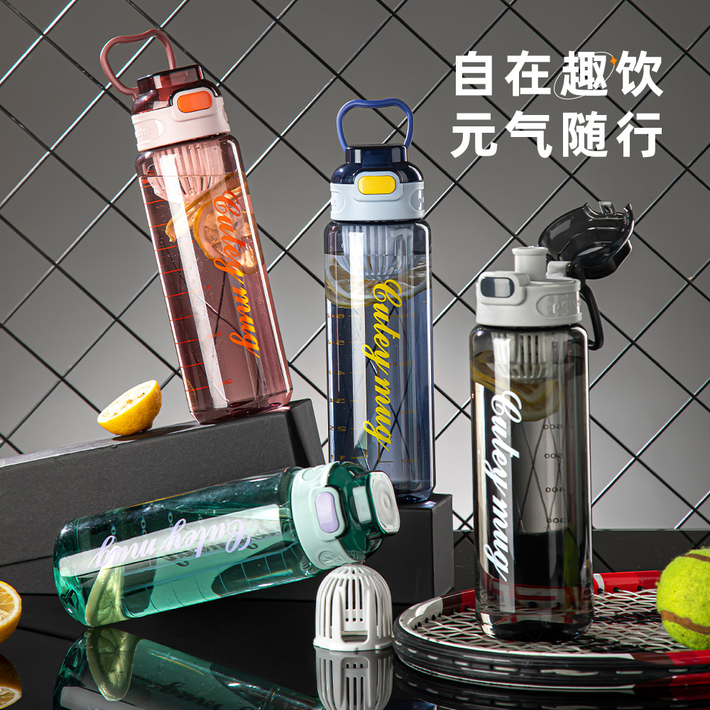 高颜值大容量塑料杯带提绳刻度杯子学生直饮杯户外运动水杯定制