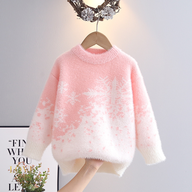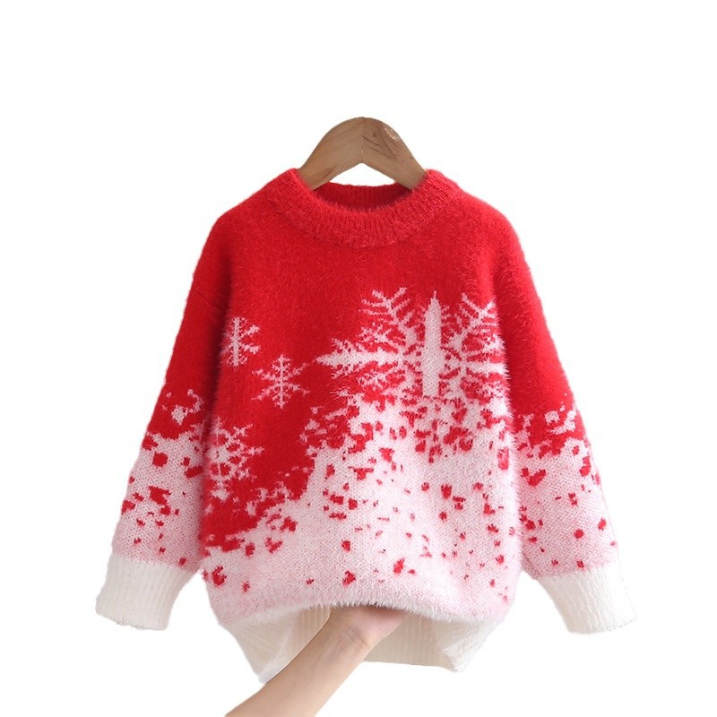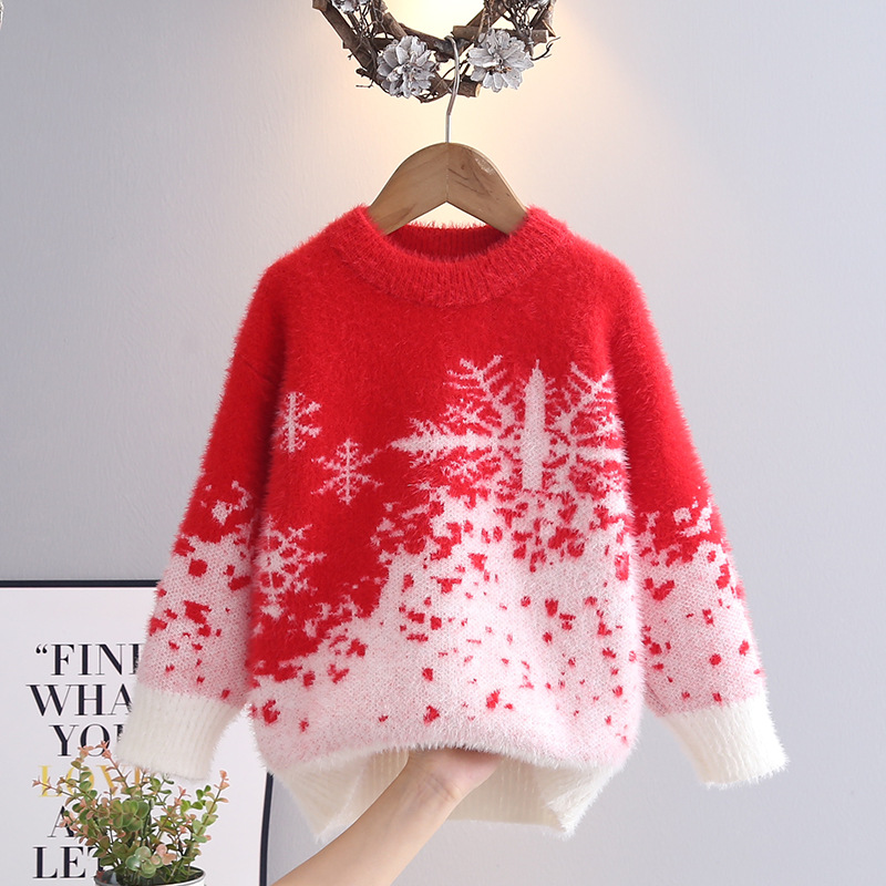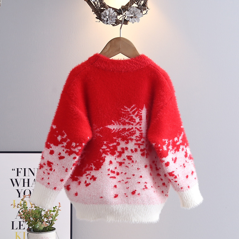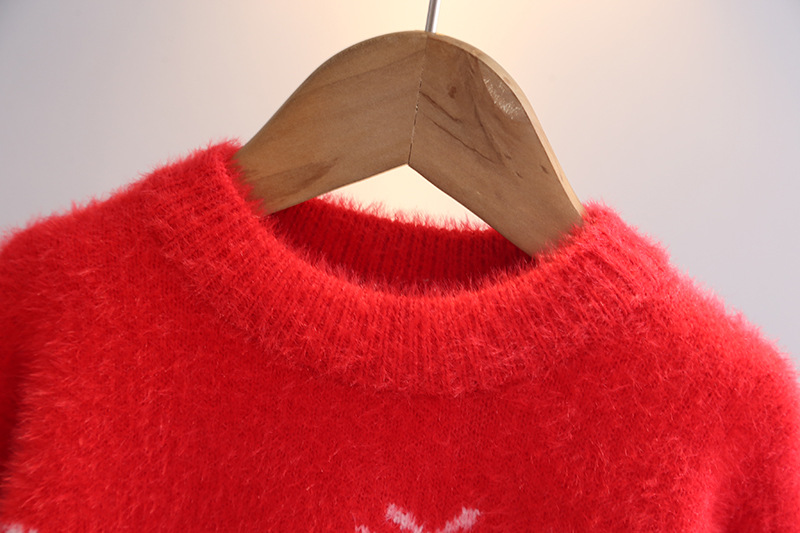 소녀들의 가을과 겨울 2024 새로운 도착 밍크 벨벳 따뜻한 백킹 니트 스웨터 중대형 어린이 Guofeng 빨간 옷스토어 가기