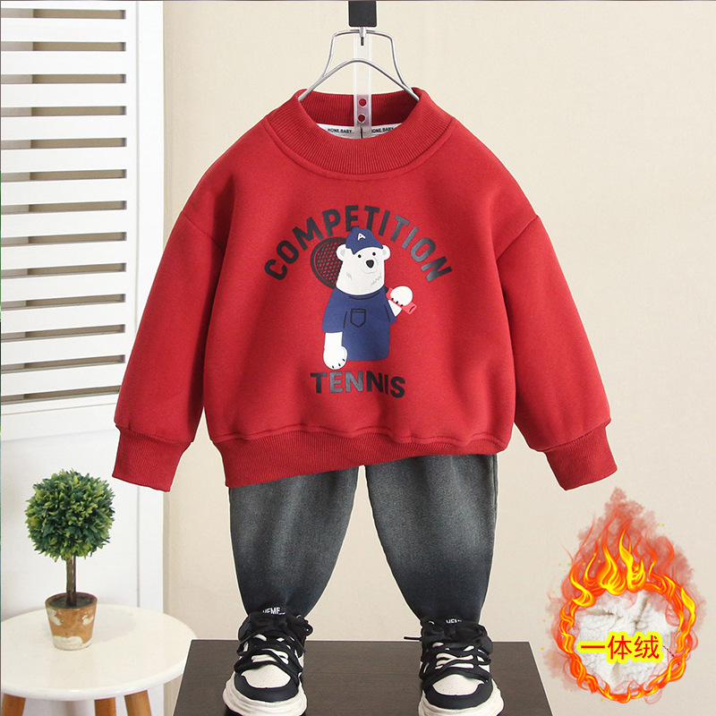 6740 소년 가을, 겨울 운동복 한국 스타일 벨벳 탑 베이비 2025 새로운 어린이 겨울 풀오버 셔츠스토어 가기