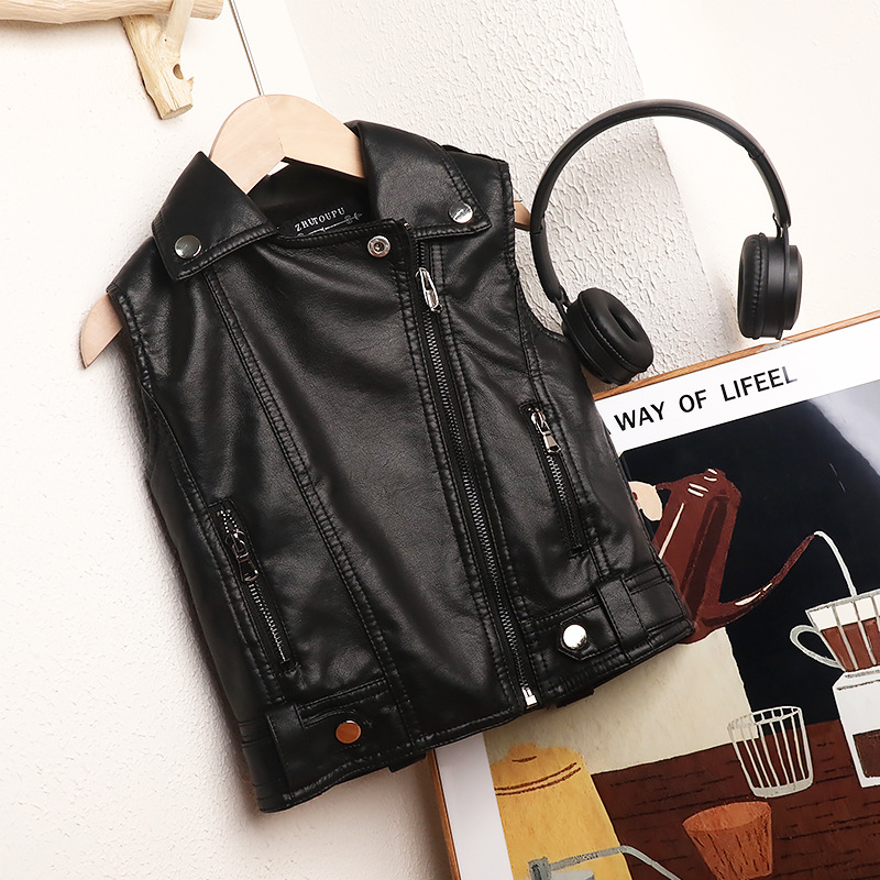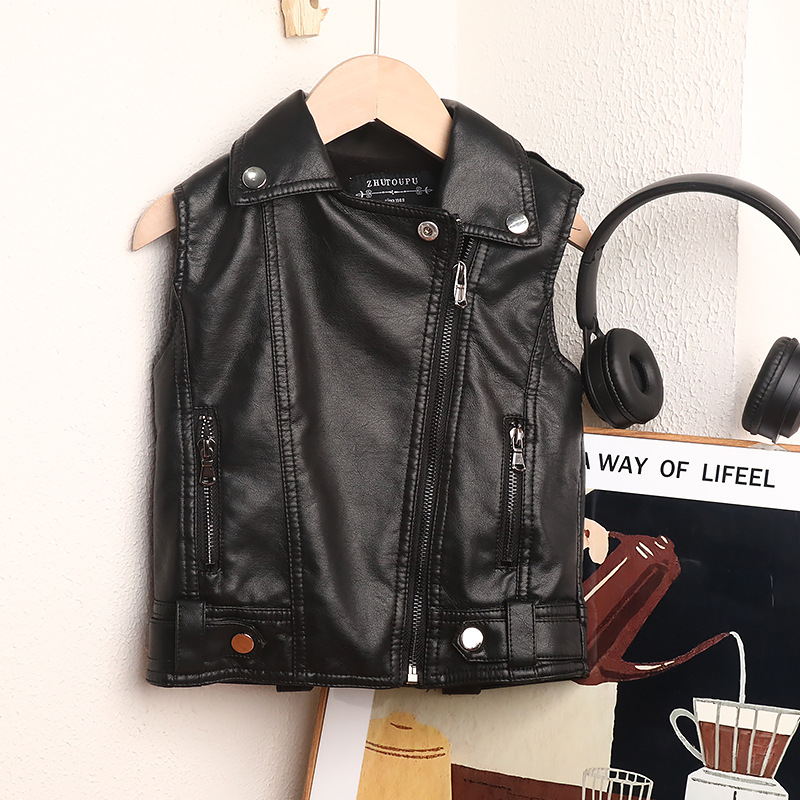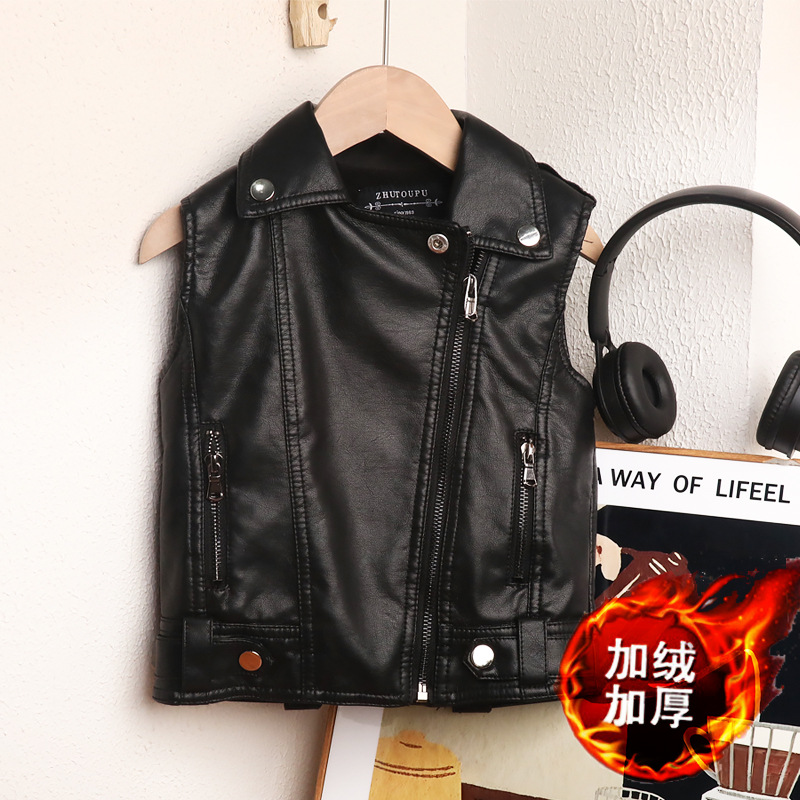소년 소녀를위한 기모 두꺼운 어린이 가죽 조끼 코트 겨울 새로운 한국식 올 매치 베이비 오토바이 옷깃 조끼스토어 가기