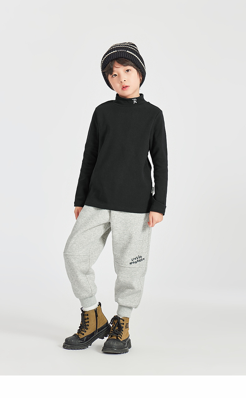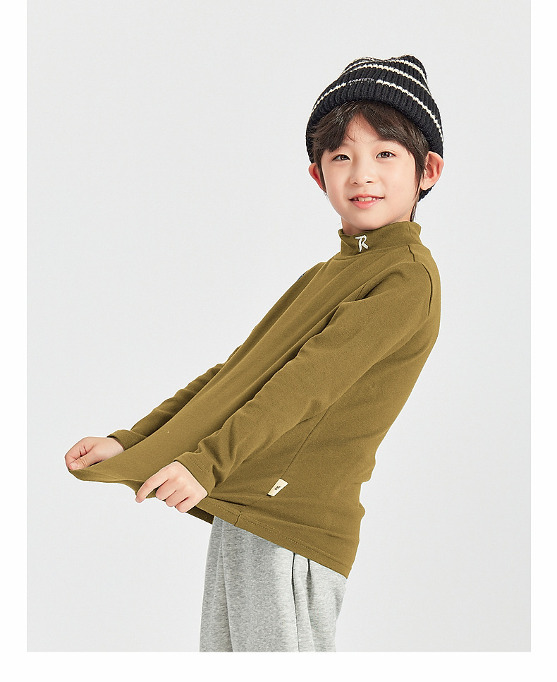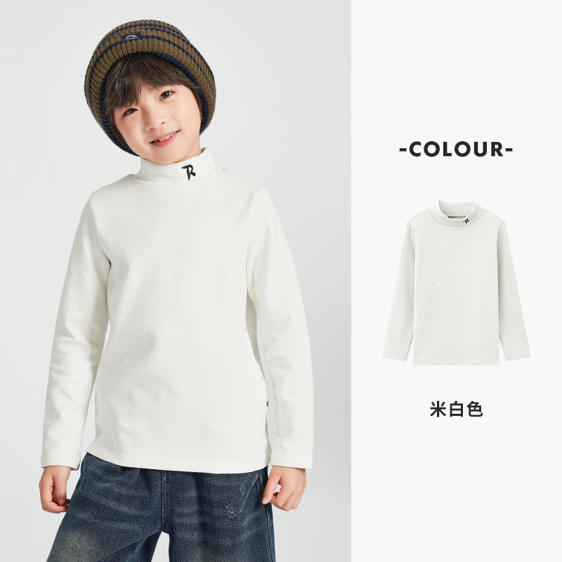 [넥라인 자수] 남아용 다용도 하의 셔츠, 겨울 패션 심플 아동용 긴팔 중대형 아동용 따뜻한 티셔츠스토어 가기