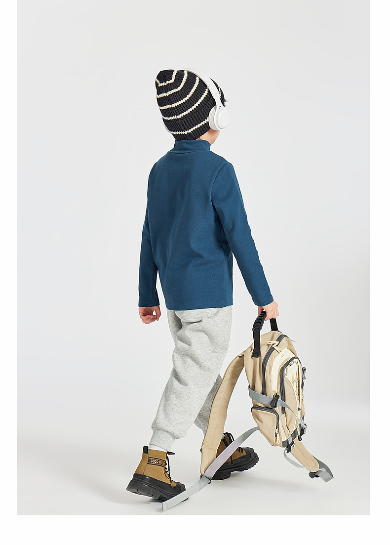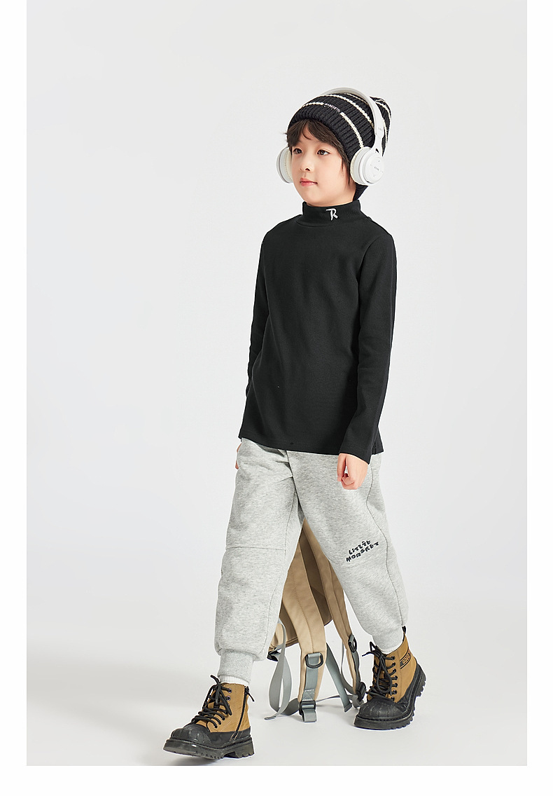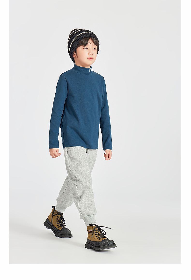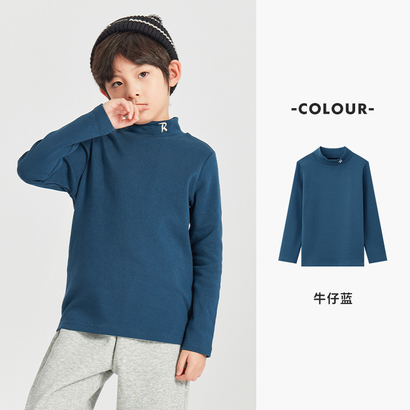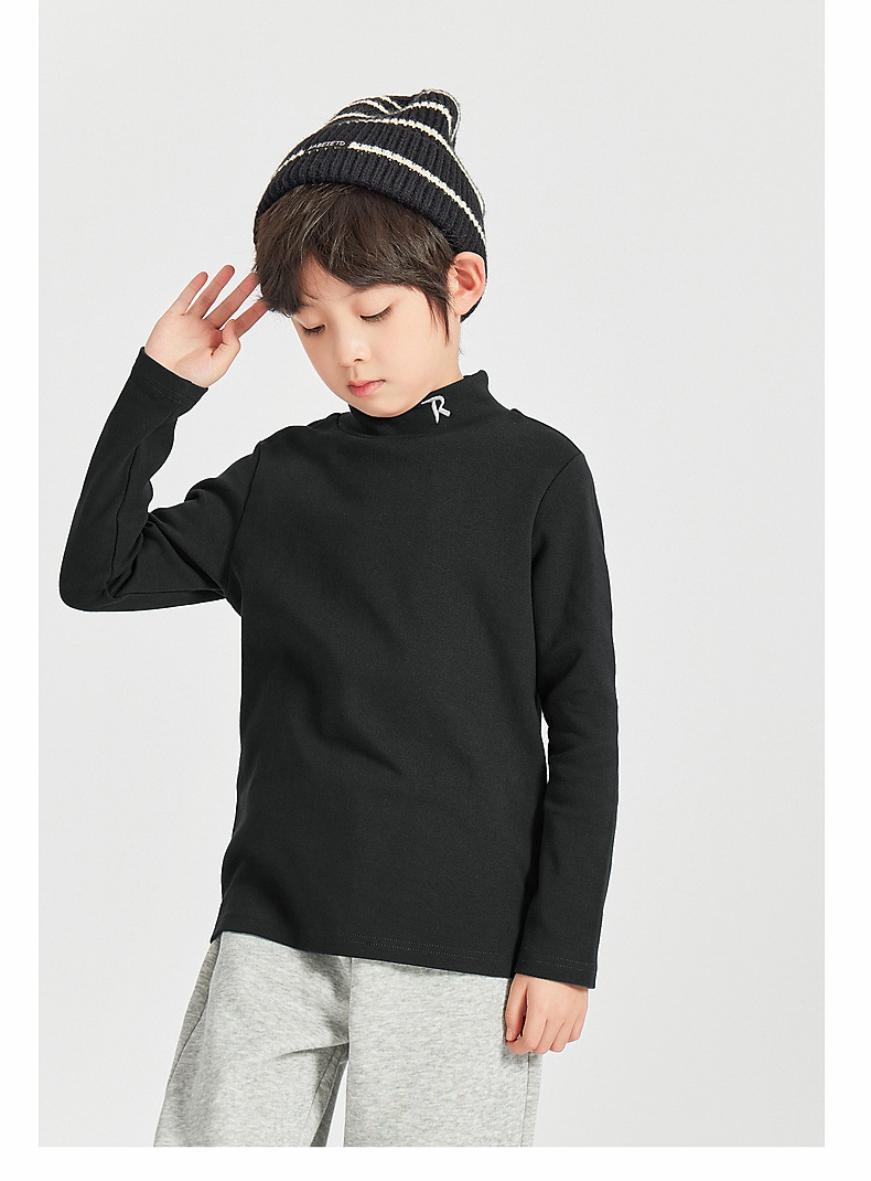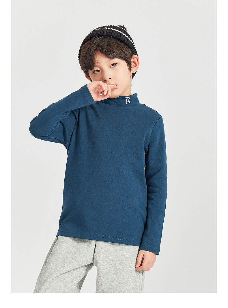 [넥라인 자수] 남아용 다용도 하의 셔츠, 겨울 패션 심플 아동용 긴팔 중대형 아동용 따뜻한 티셔츠
