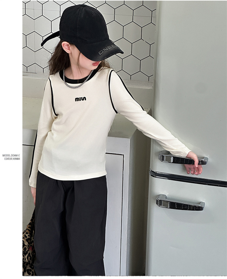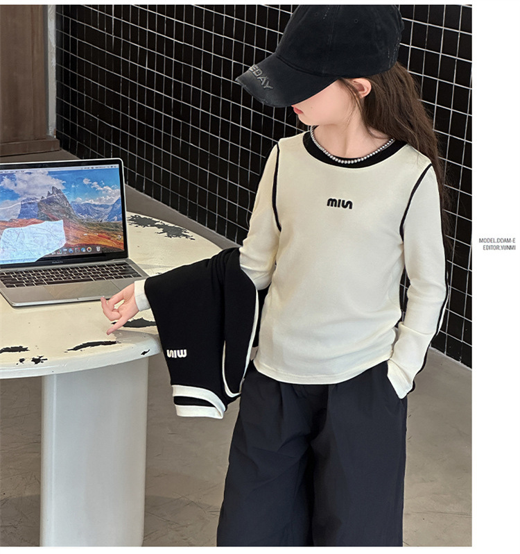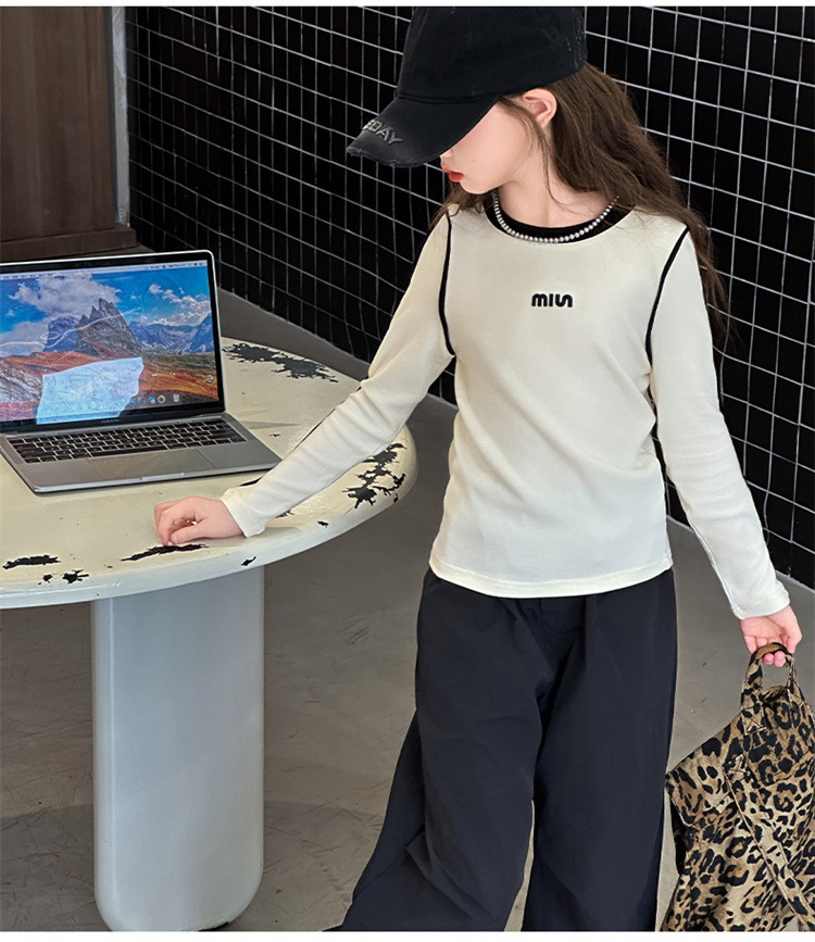여아용 하의 셔츠, 가을 캐주얼 스타일, 여아용 슬림 긴팔 티셔츠, 아동용 가을 겨울 벨벳 이너 탑스토어 가기