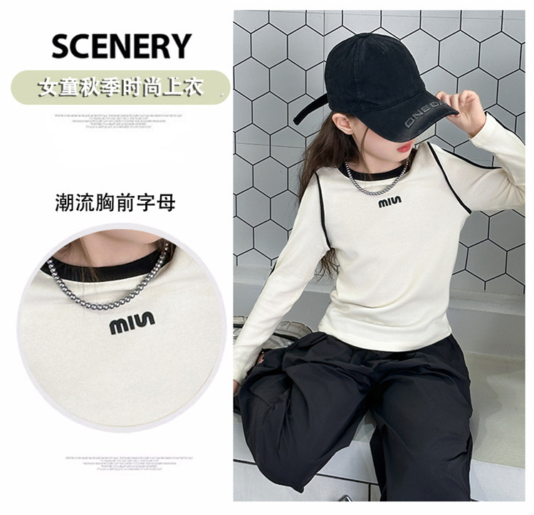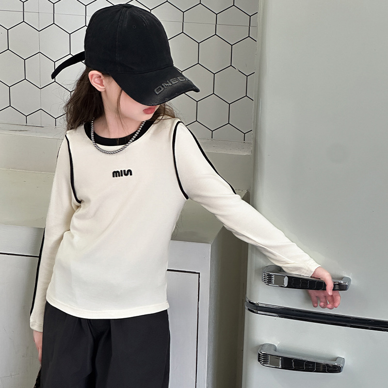 여아용 하의 셔츠, 가을 캐주얼 스타일, 여아용 슬림 긴팔 티셔츠, 아동용 가을 겨울 벨벳 이너 탑