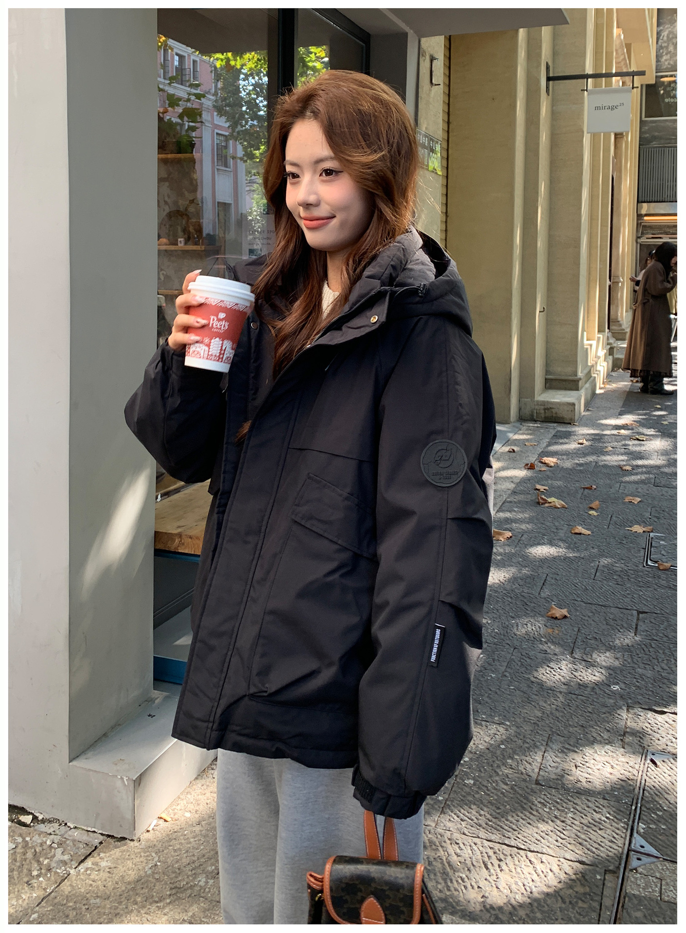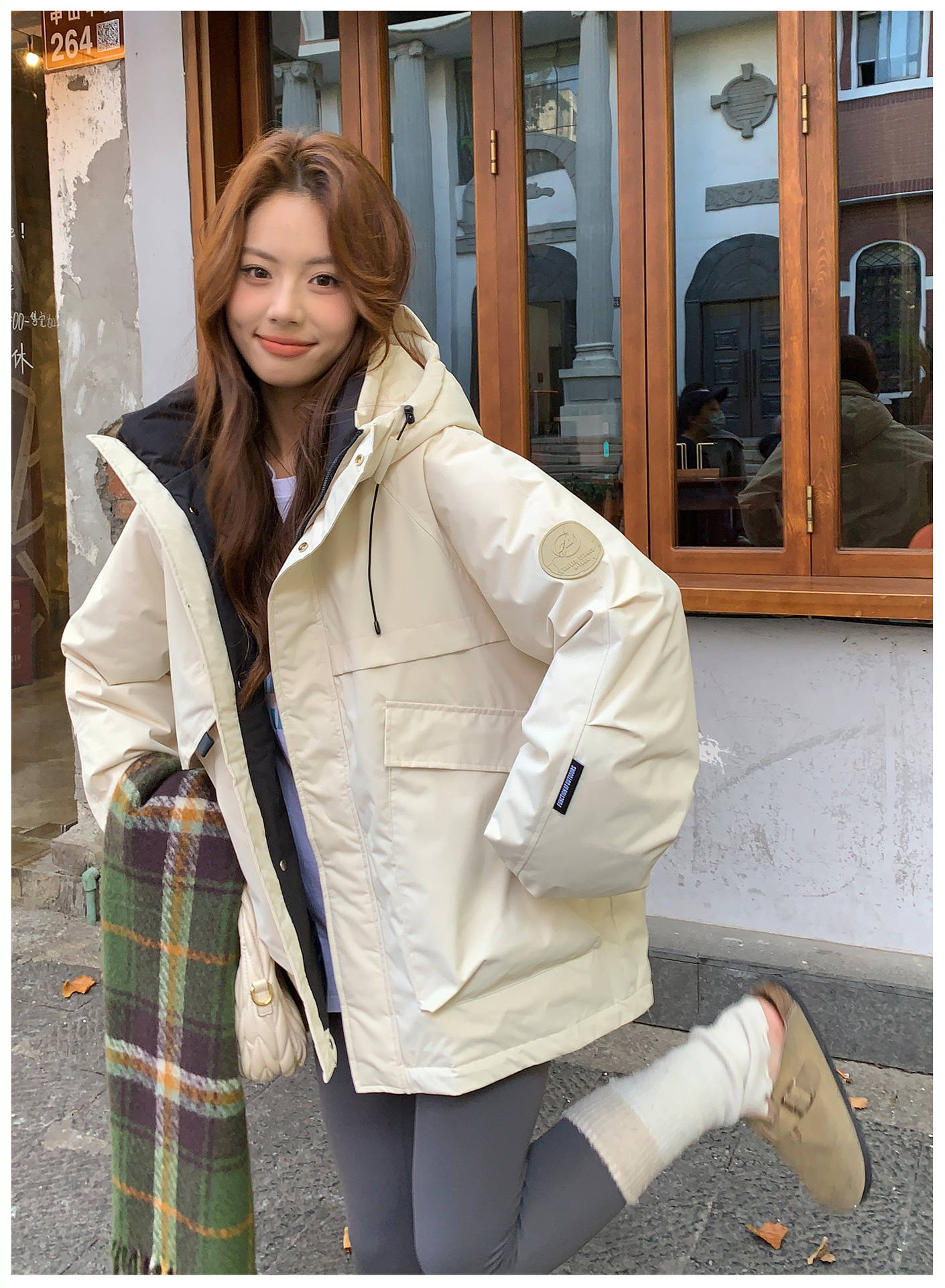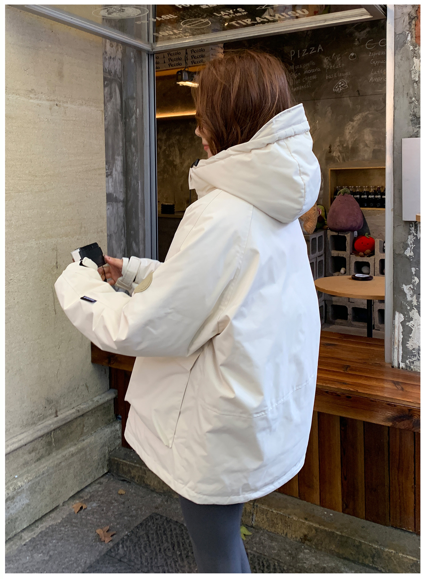 어린이 작업복 다운 재킷 한국 스타일 아동용 겨울 화이트 덕다운 후드 따뜻한 재킷