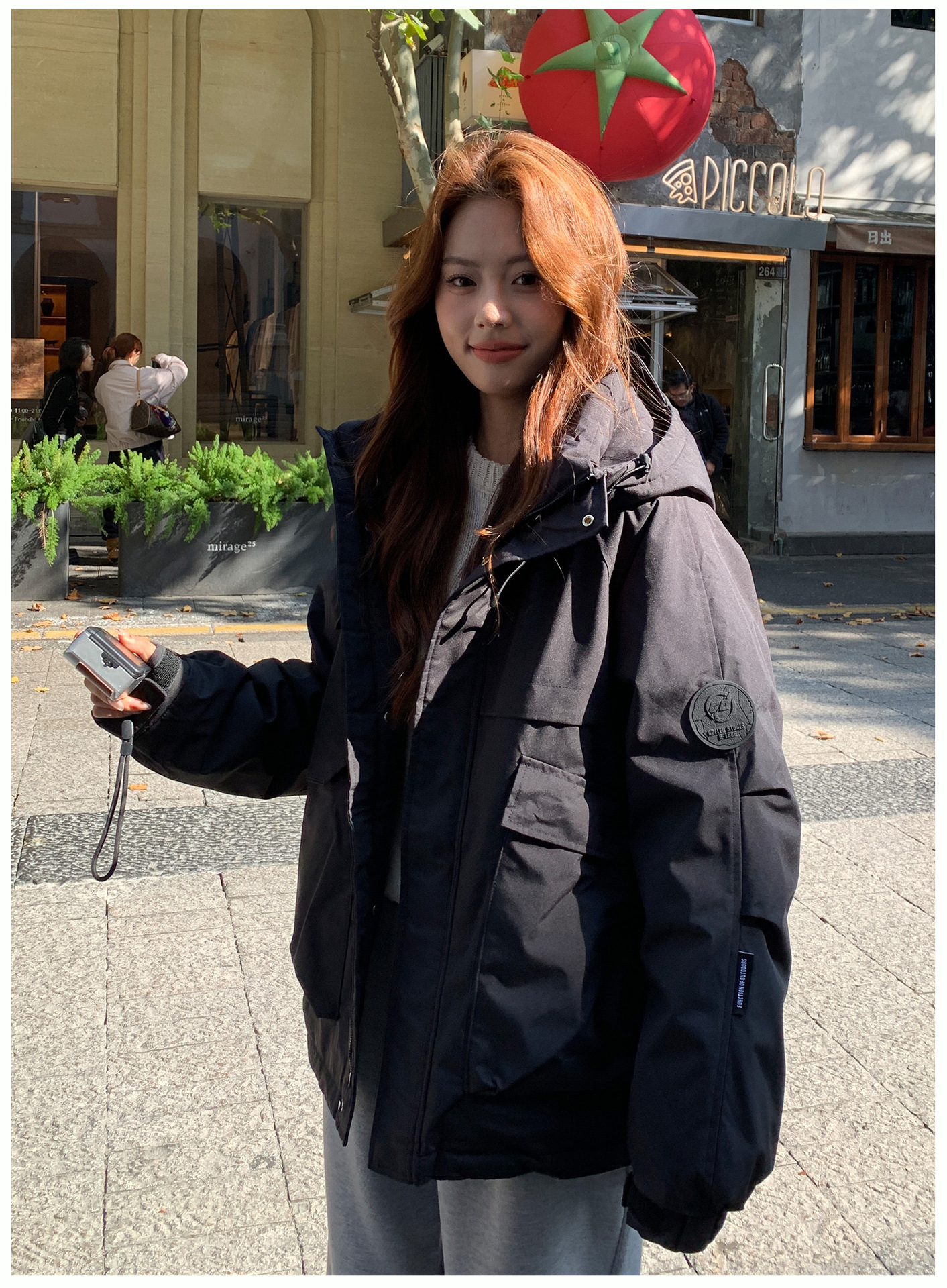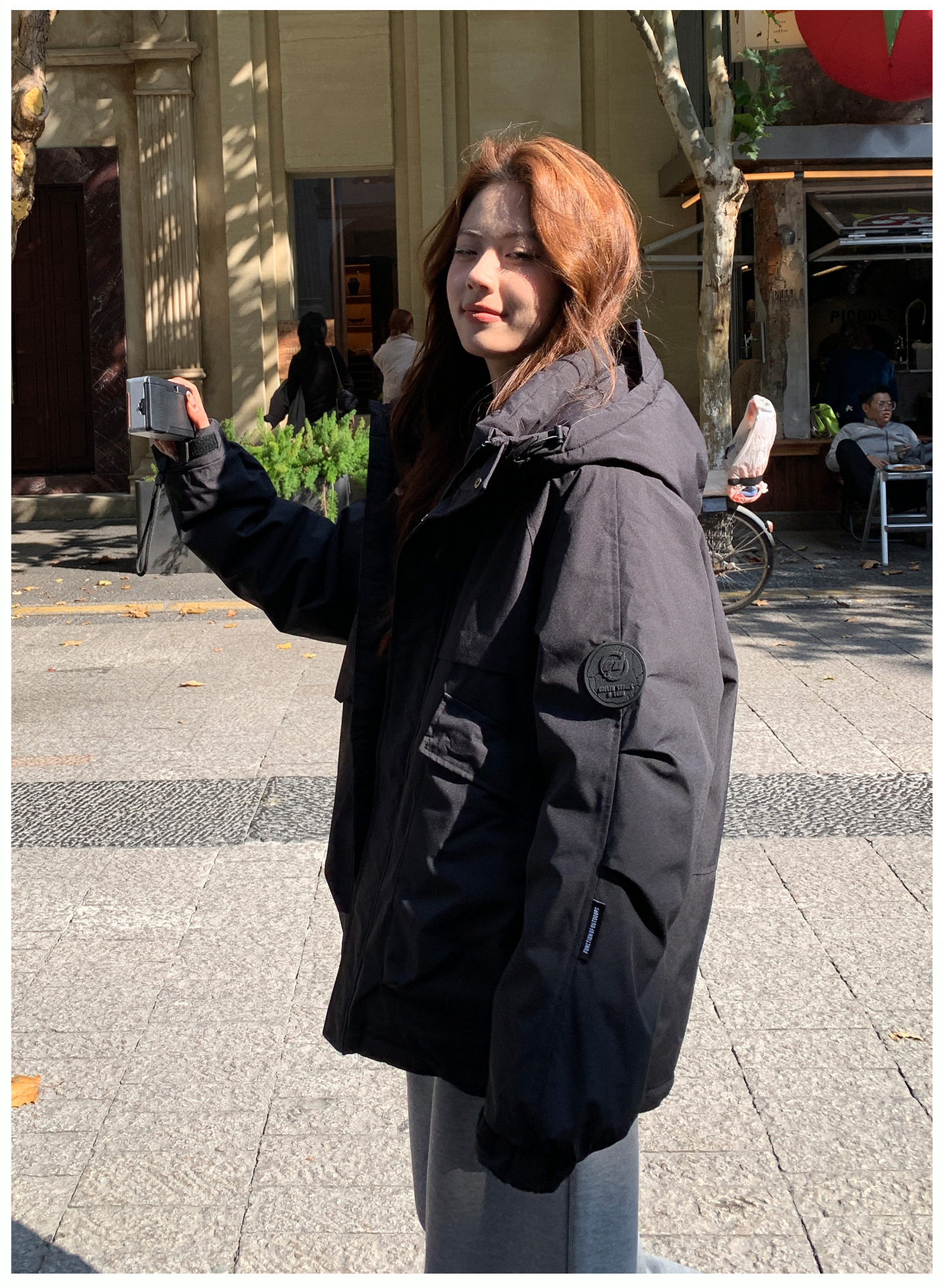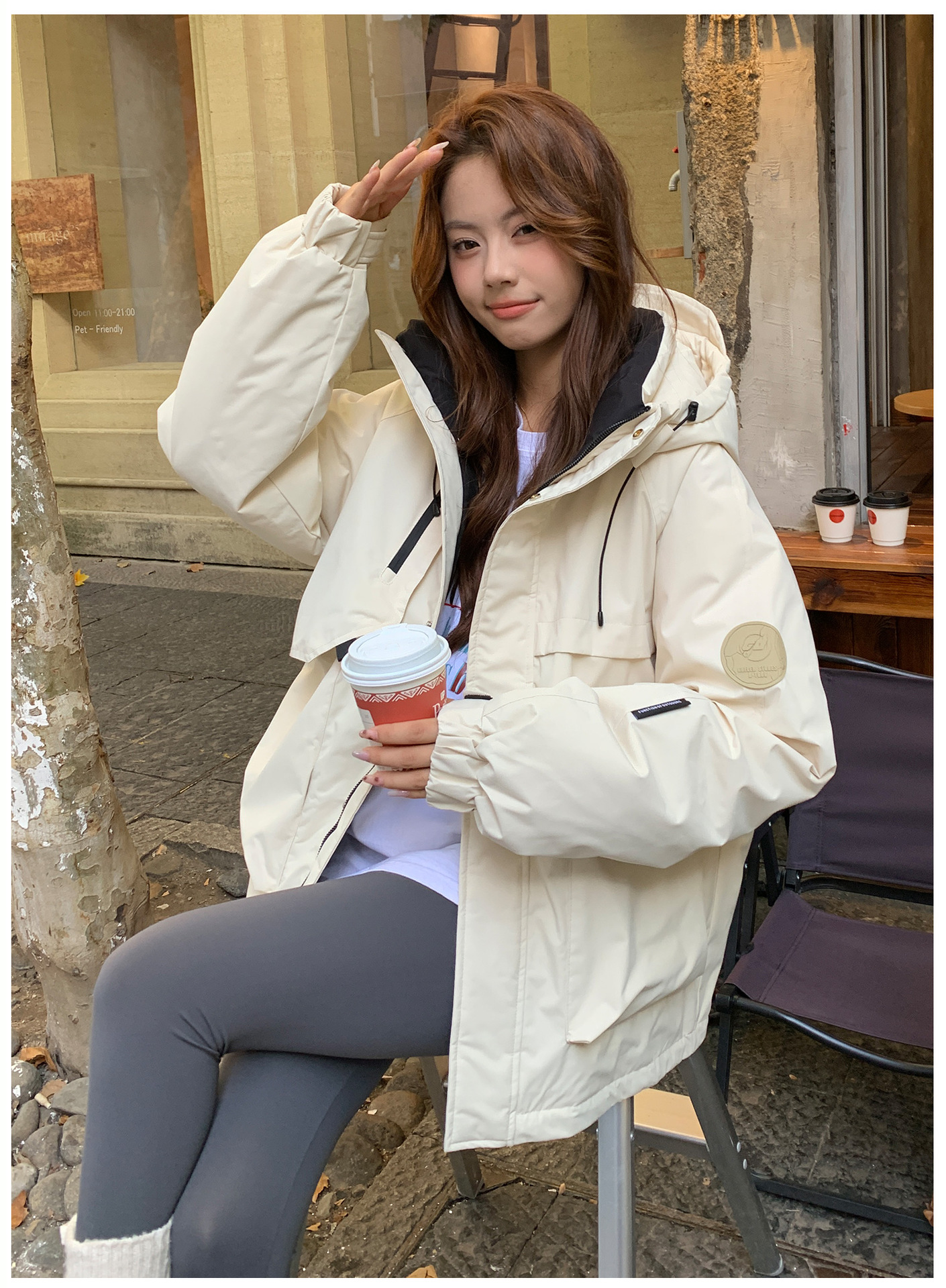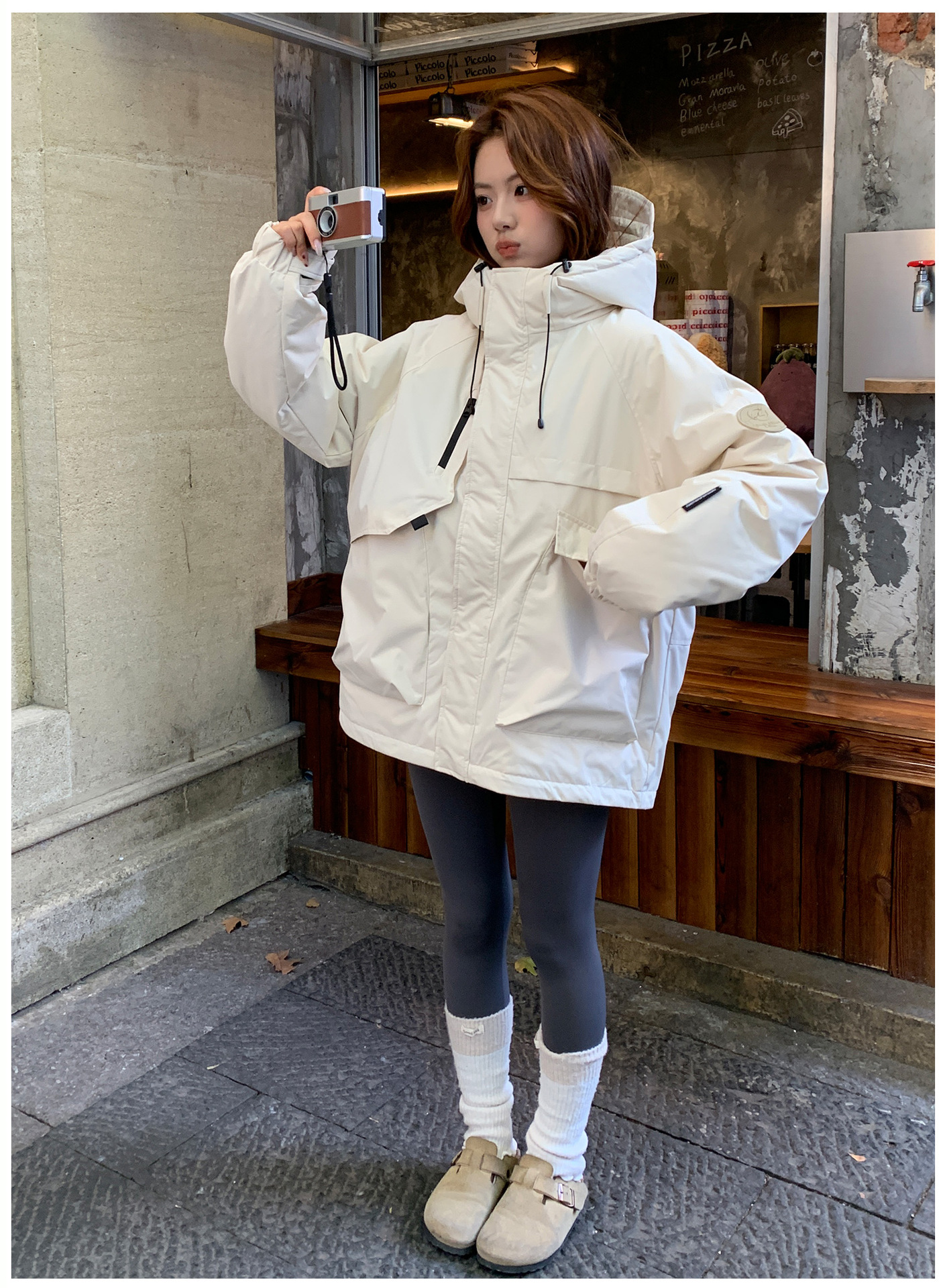 어린이 작업복 다운 재킷 한국 스타일 아동용 겨울 화이트 덕다운 후드 따뜻한 재킷