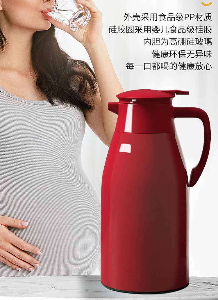 빨간 보온병 결혼식 보온병 물병 사무실 끓는 물 절연 보온병 가정용 유리 라이너 대용량 도매스토어 가기