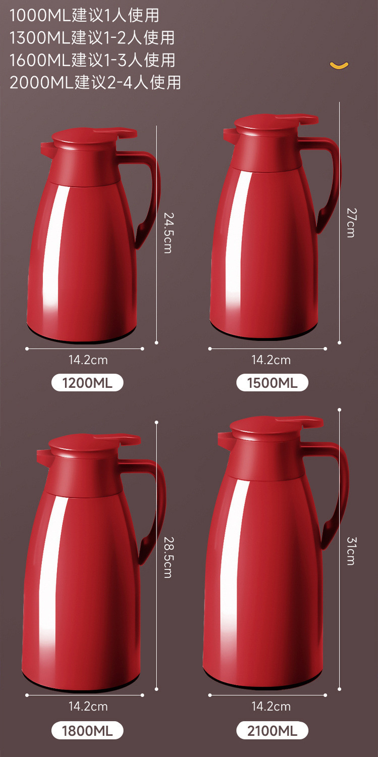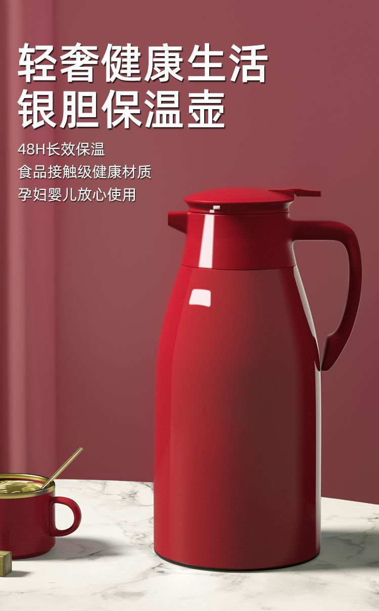빨간 보온병 결혼식 보온병 물병 사무실 끓는 물 절연 보온병 가정용 유리 라이너 대용량 도매