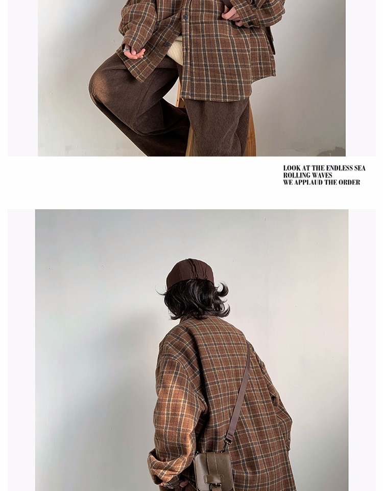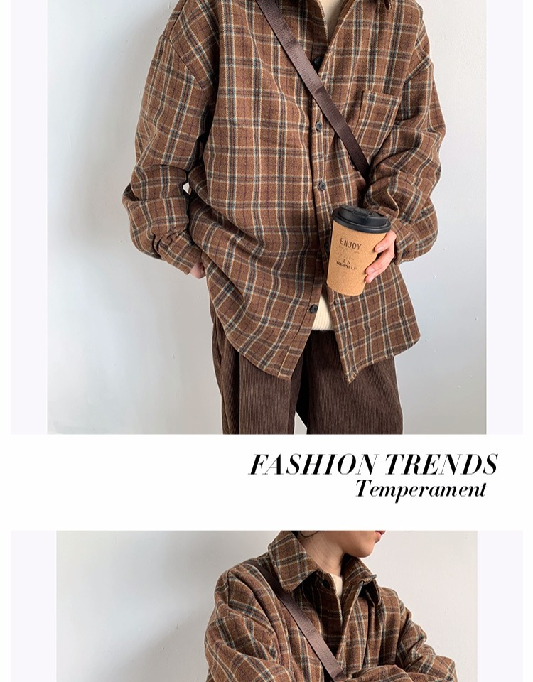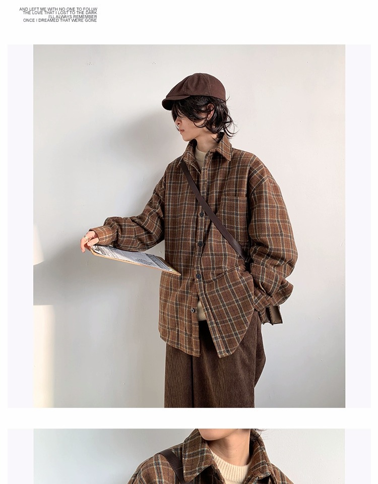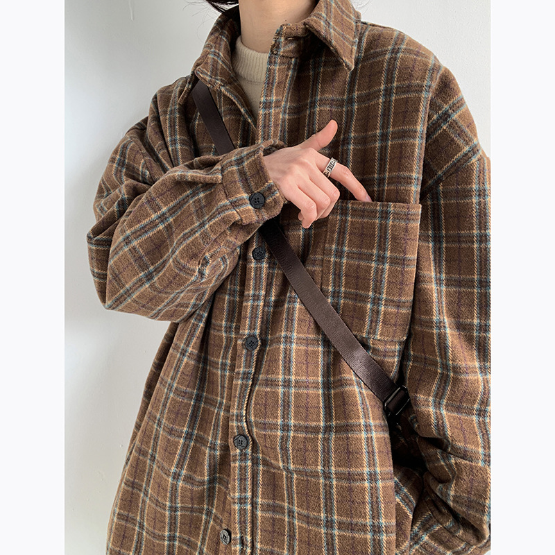 Maillard 다크 브라운 격자 무늬 셔츠 소년 봄과 가을 일본 복고풍 긴 소매 셔츠 대학 스타일 캐주얼 코트 트렌디스토어 가기