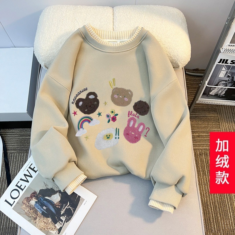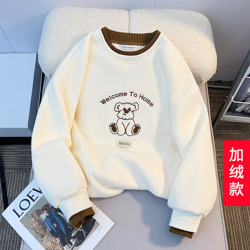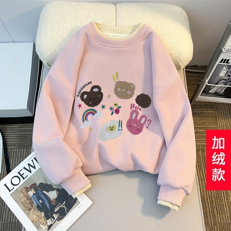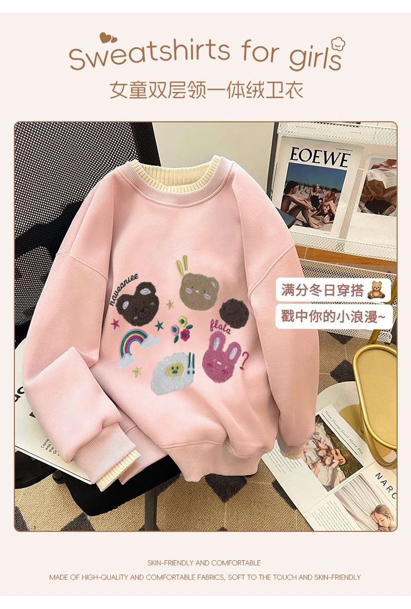 소녀 기모 크루 넥 스웨터 가을과 겨울 어린이 느슨한 서양식 양모 칼라 탑 걸스 겨울베이스 셔츠스토어 가기