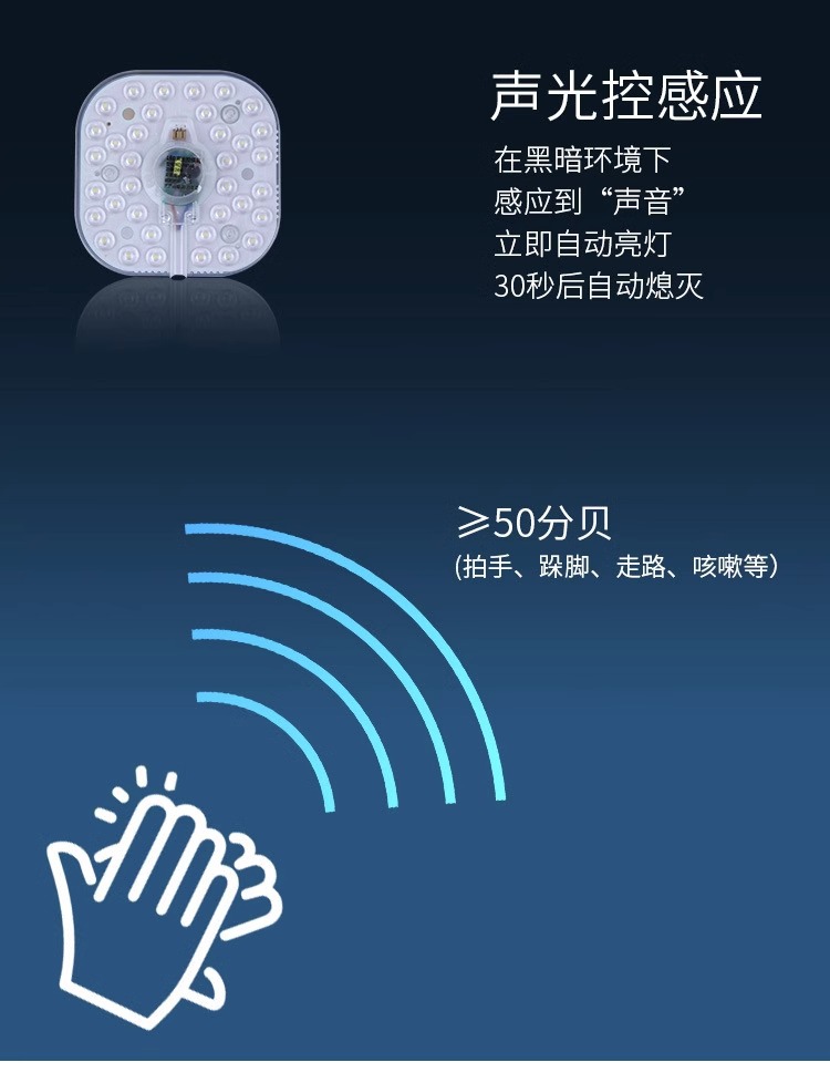 음향 및 조명 제어 LED 레이더 인체 유도 천장 조명 모듈 복도 통로 개조 라이트 패널 라이트 패널 음성 제어 심지스토어 가기