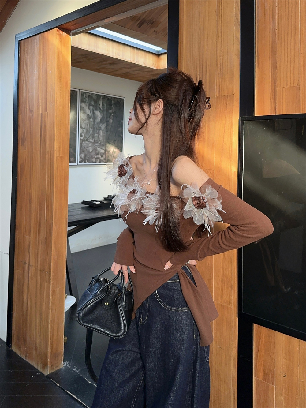 여성 가을 슬림 스트랩 디자인 스파이스 소녀 슬림 숄더 탑스토어 가기