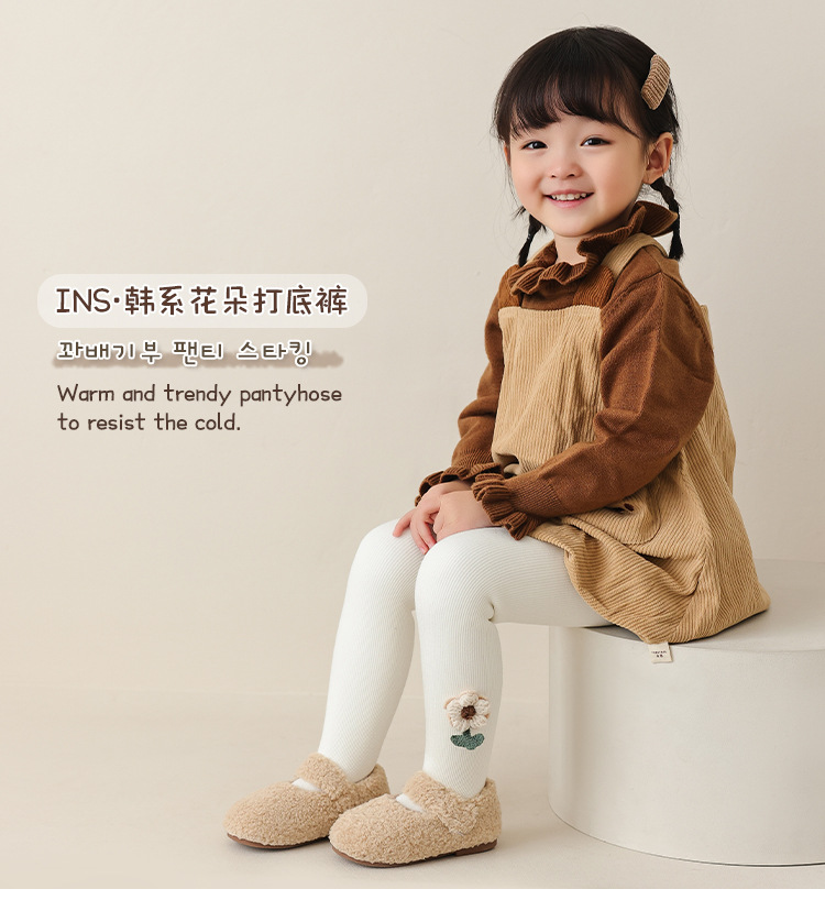 아기 기모 두꺼운 따뜻한 팬티 스타킹 아기 여성 3 차원 꽃 레깅스 단색 어린이 수직 양말스토어 가기