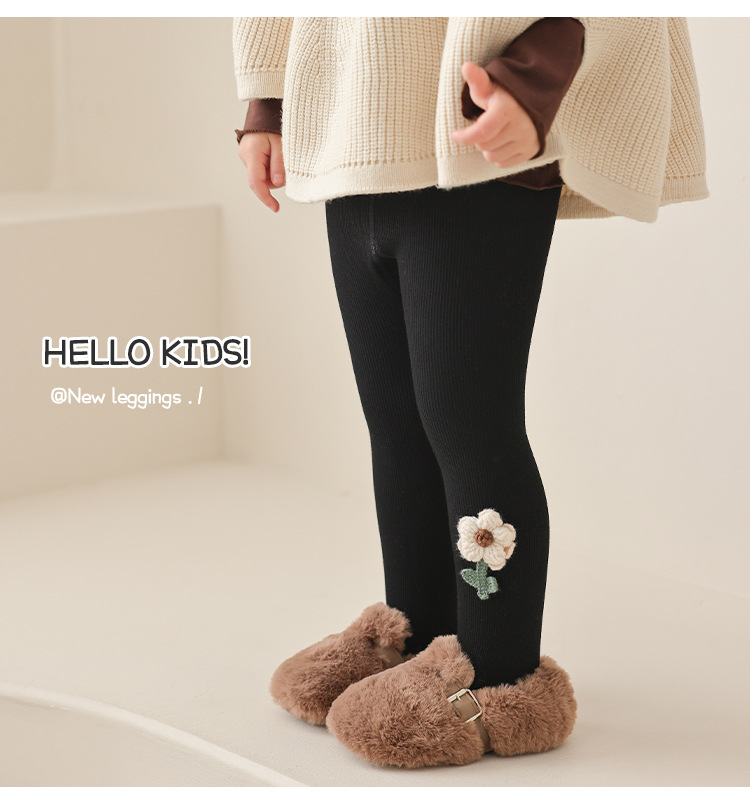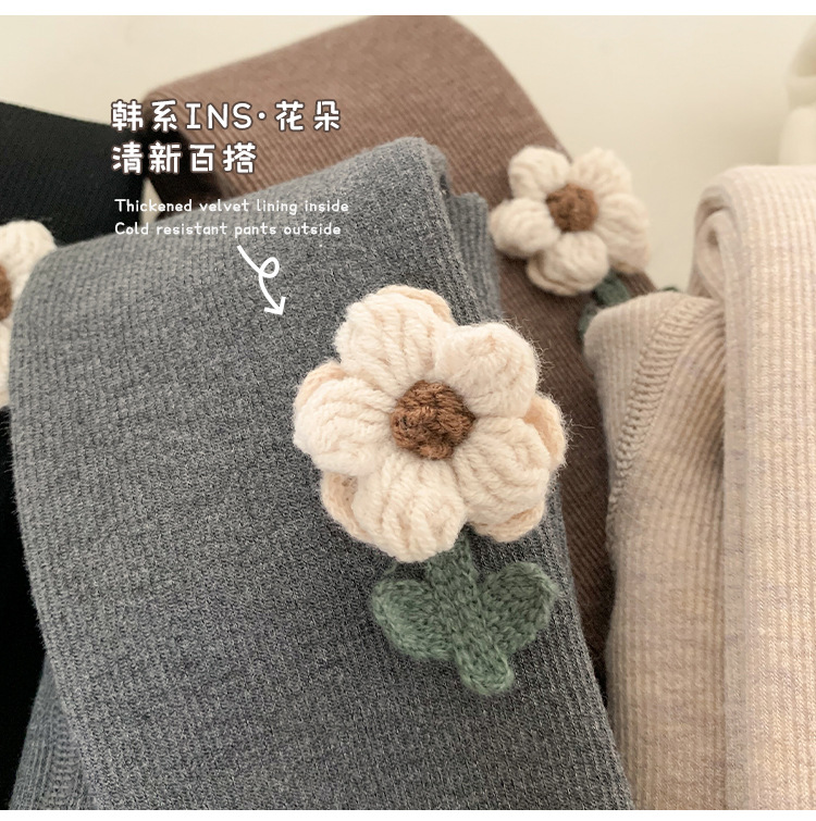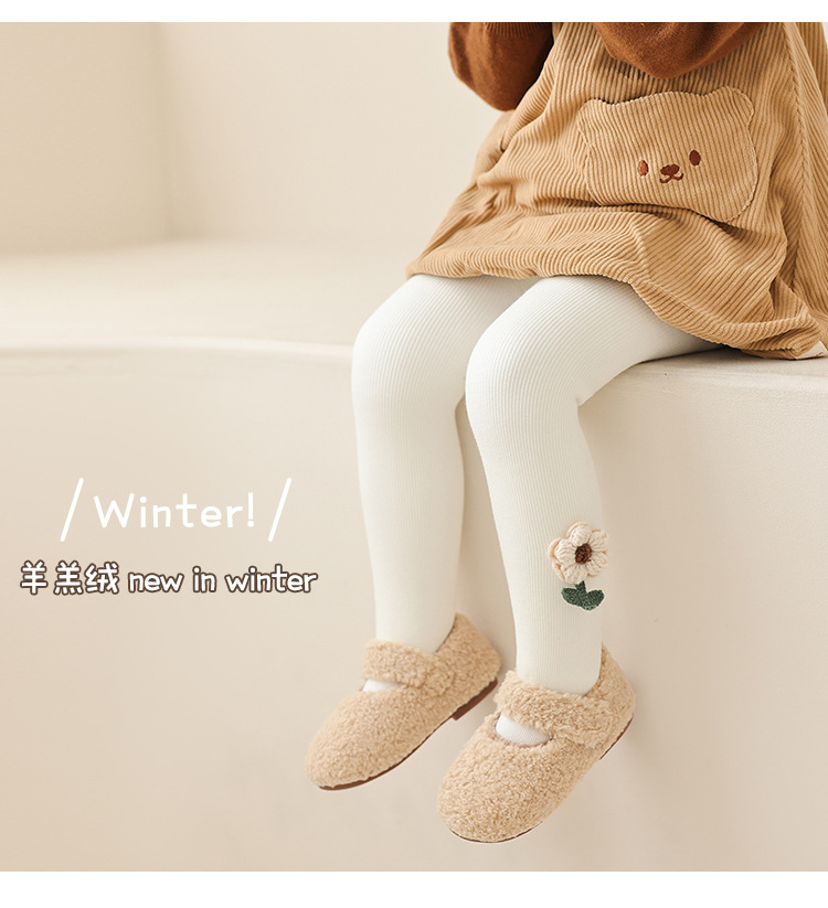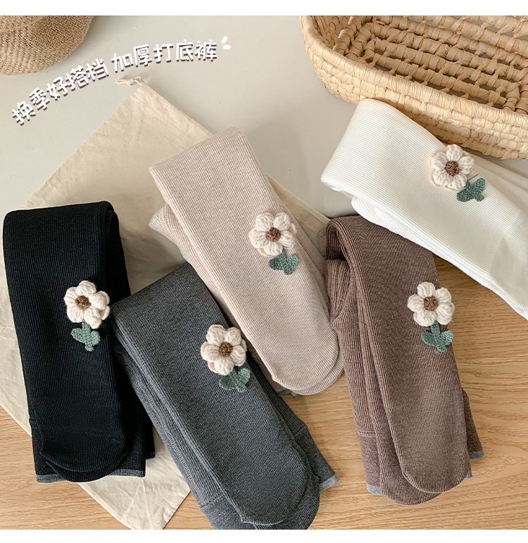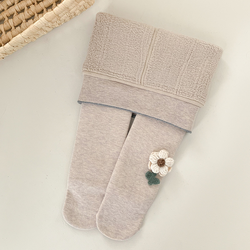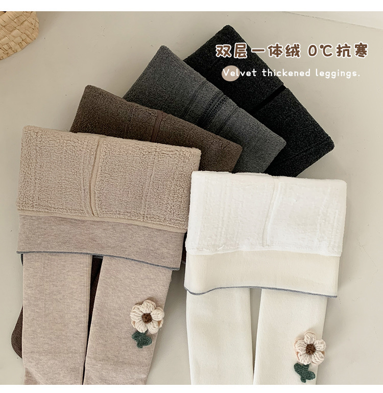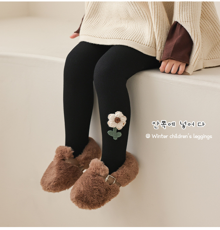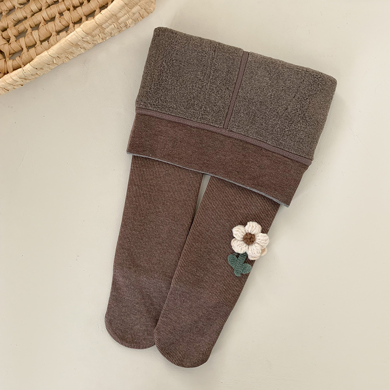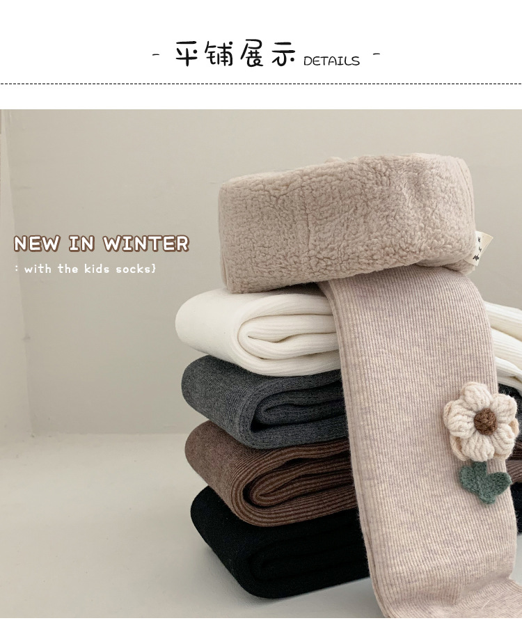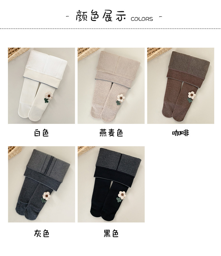 아기 기모 두꺼운 따뜻한 팬티 스타킹 아기 여성 3 차원 꽃 레깅스 단색 어린이 수직 양말
