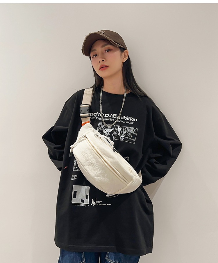 캔버스 작은 가방 여성의 2024 새로운 간단한 올 매치 가슴 가방 대용량 학생 남녀 작은 크로스 바디 백 허리 가방
