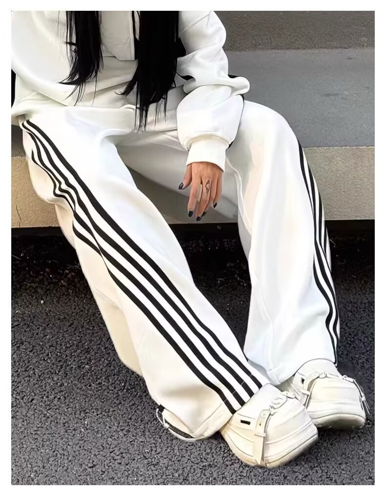 고급 Dape 화이트 와이드 레그 바지 봄과 가을 새로운 높은 허리 슬리밍 올매치 스트레이트 캐주얼 스포츠 바지