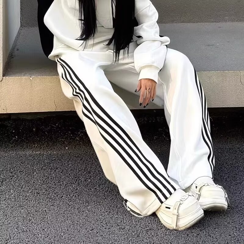 고급 Dape 화이트 와이드 레그 바지 봄과 가을 새로운 높은 허리 슬리밍 올매치 스트레이트 캐주얼 스포츠 바지스토어 가기