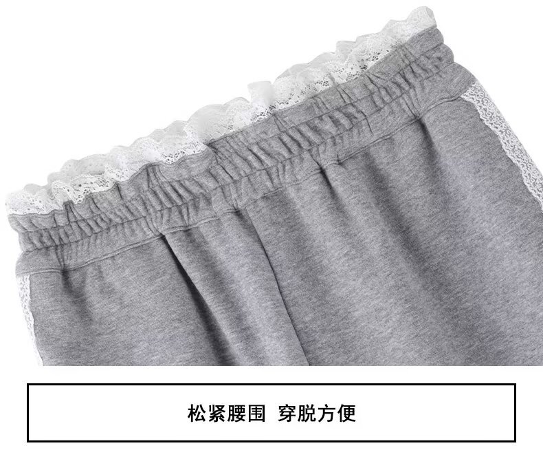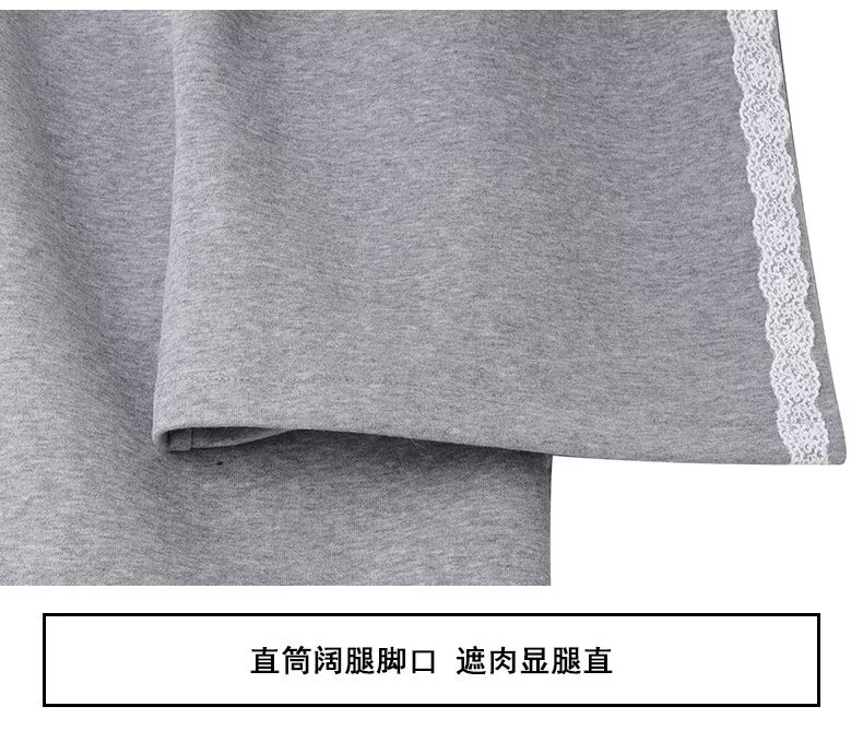 달콤한 쿨 캐주얼 바지 여성의 2024 가을 새로운 도착 멍청한 허리 스티칭 레이스 레이스 키가 큰 세련된 넓은 다리 바지