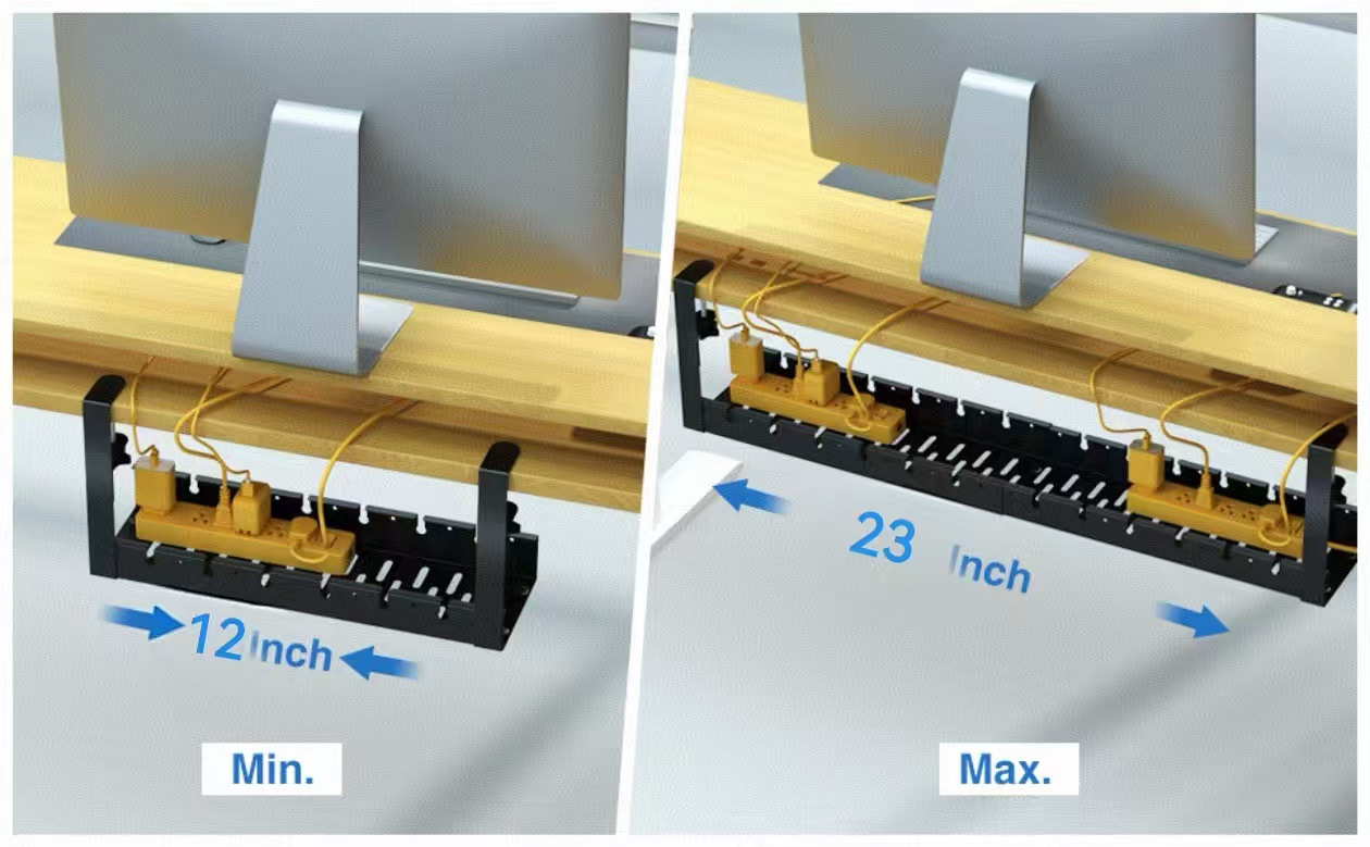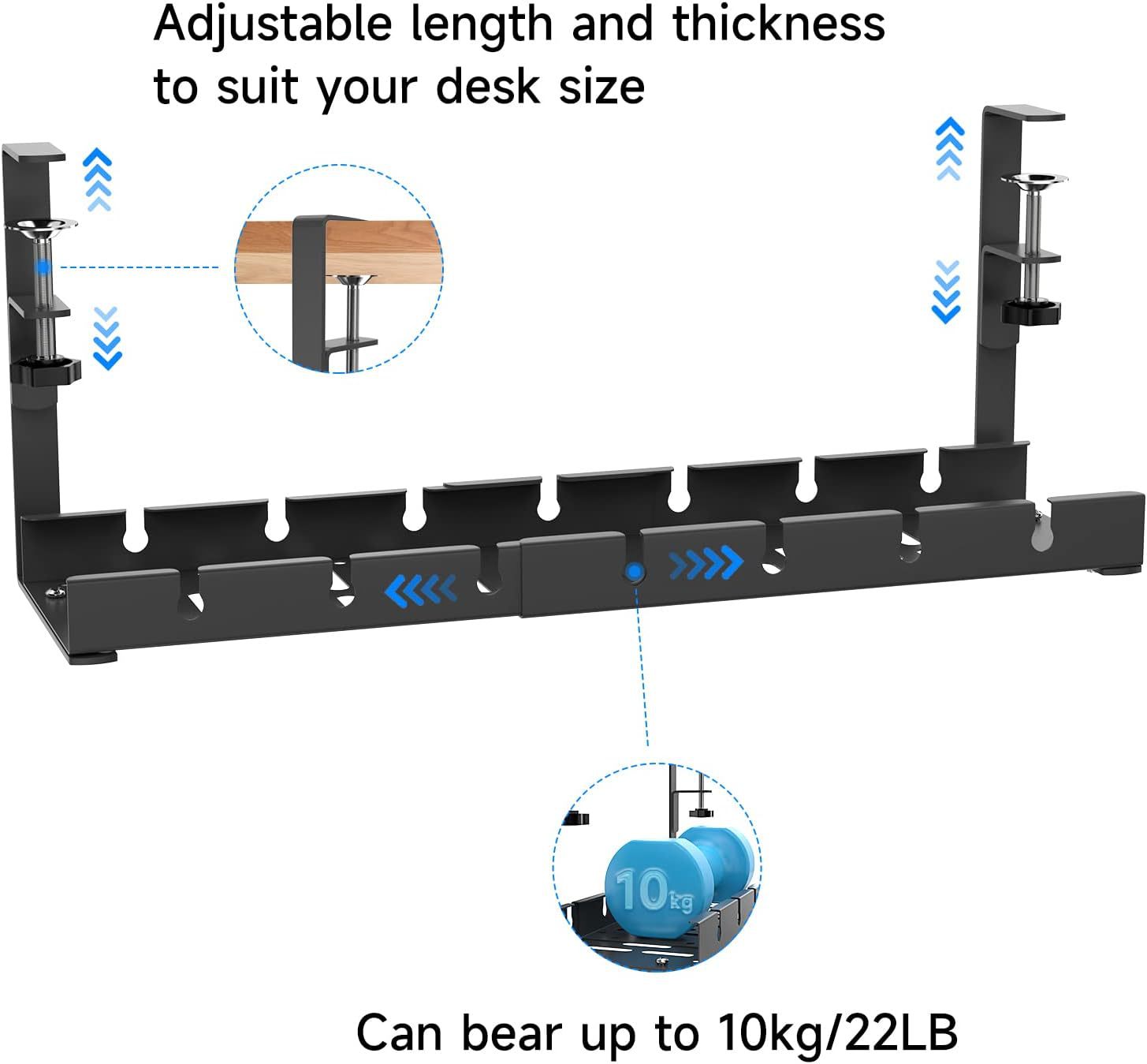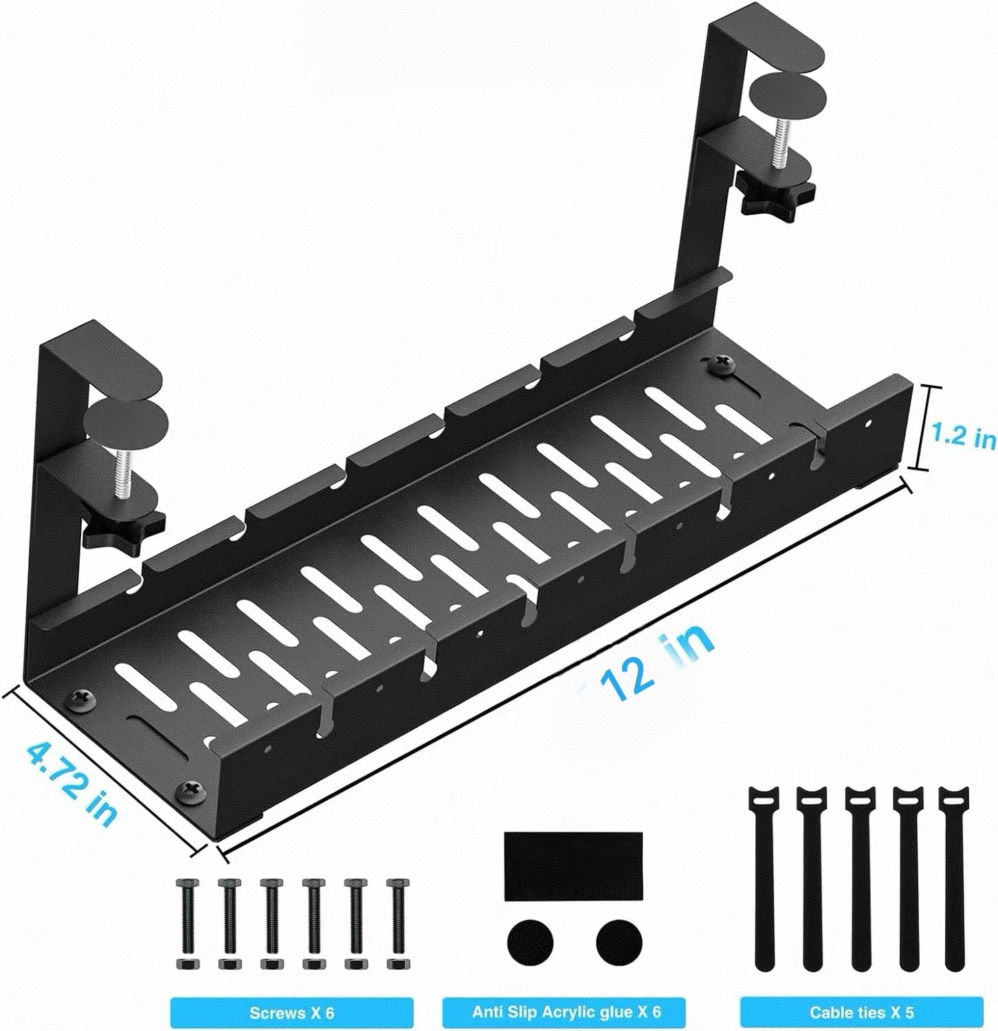 테이블 아래 펀치 프리 케이블 관리 랙 개폐식 케이블 행 금속 저장 상자 클램프가있는 데스크탑 트레이 아래