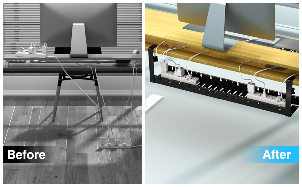 테이블 아래 펀치 프리 케이블 관리 랙 개폐식 케이블 행 금속 저장 상자 클램프가있는 데스크탑 트레이 아래스토어 가기