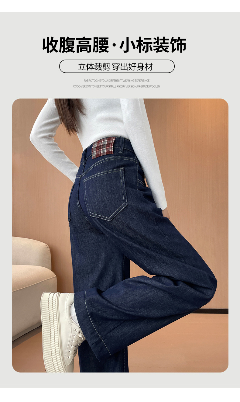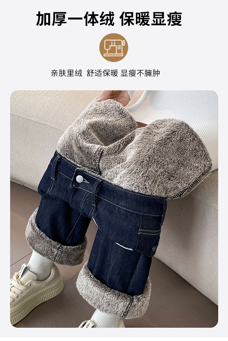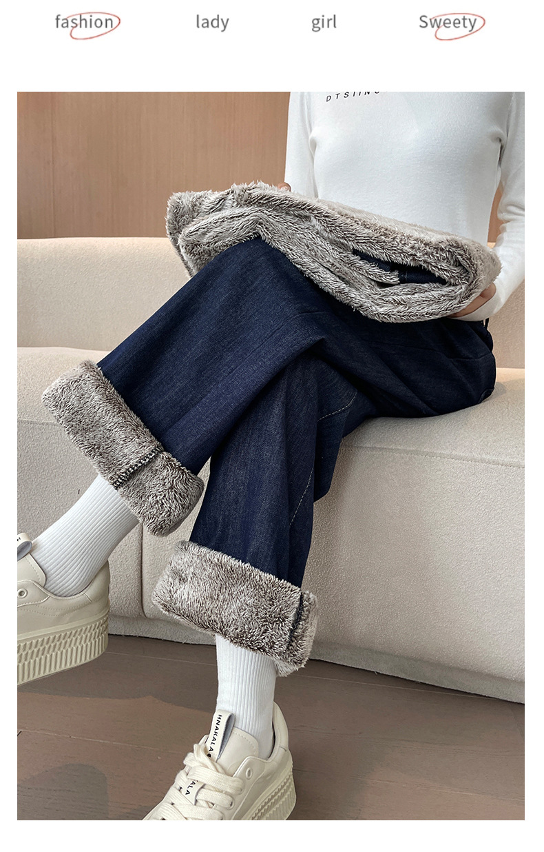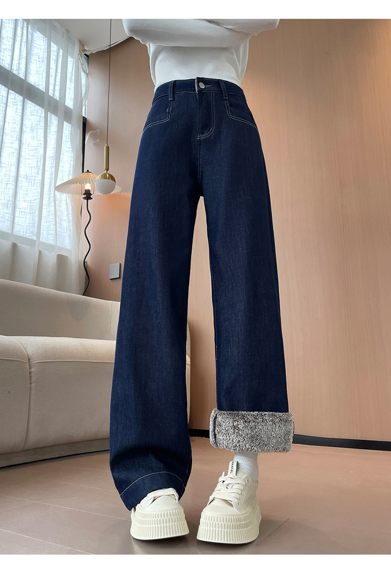 2024 겨울 양고기 양털 넓은 다리 데님 바지 높은 허리 두꺼운 기모 느슨한 슬리밍 블러지 스트레이트 바지스토어 가기