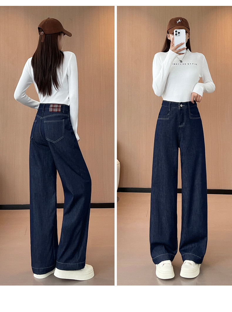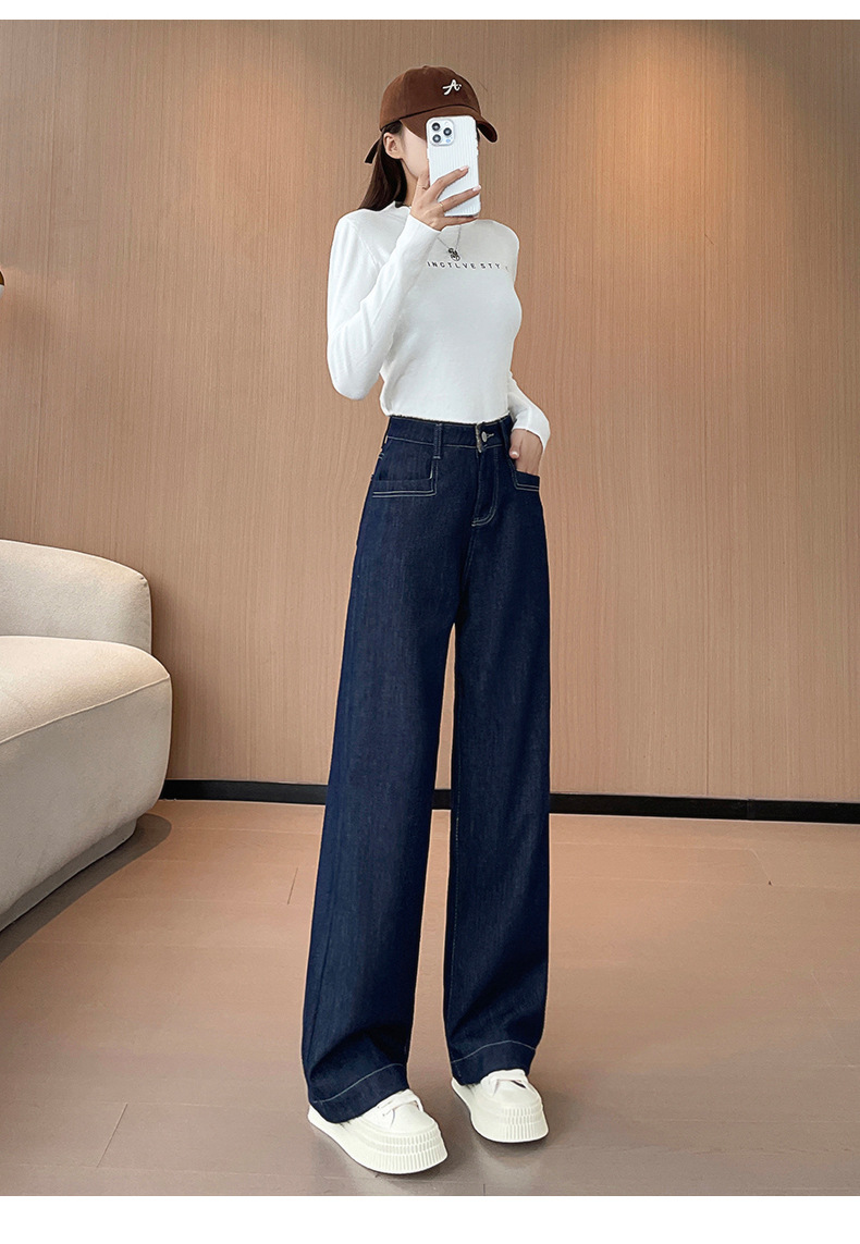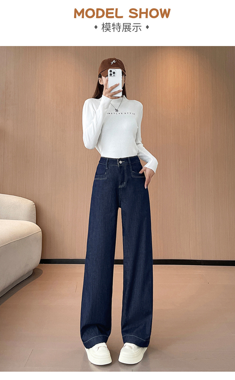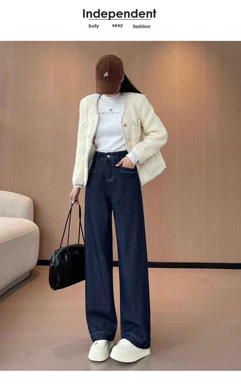 2024 겨울 양고기 양털 넓은 다리 데님 바지 높은 허리 두꺼운 기모 느슨한 슬리밍 블러지 스트레이트 바지스토어 가기