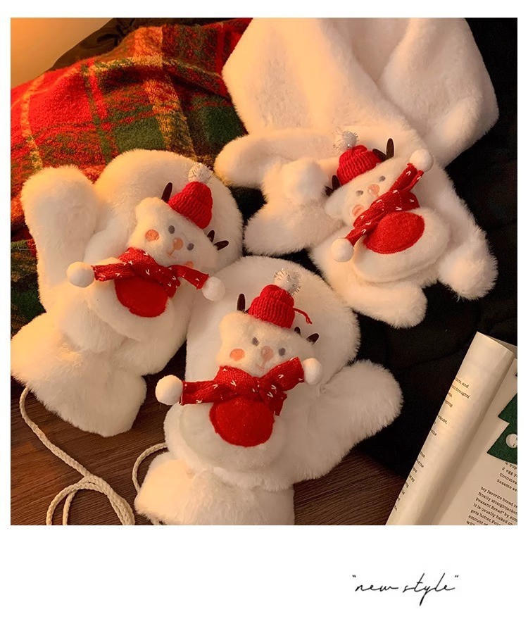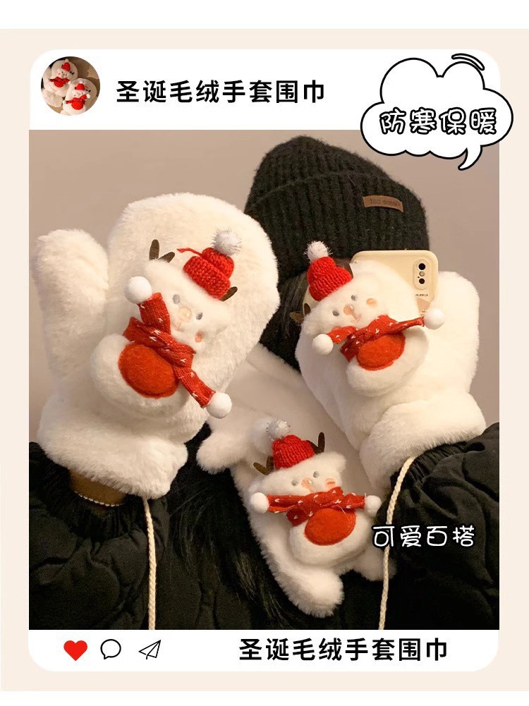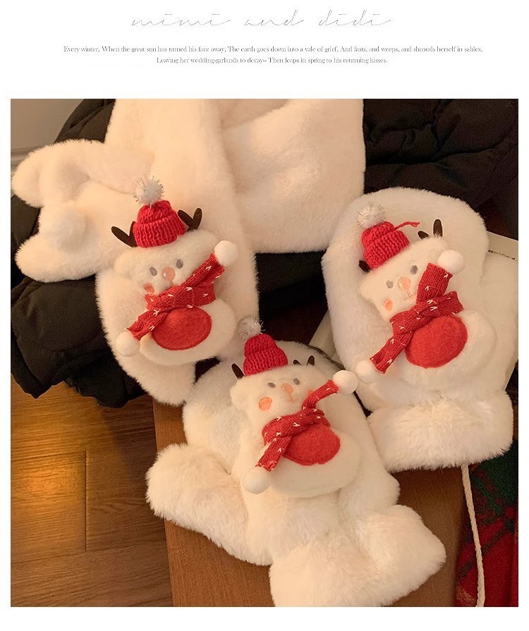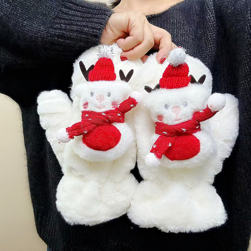 귀여운 크리스마스 눈사람 봉제 장갑 여성의 가을과 겨울 따뜻한 모피 목 승마 추위와 방풍