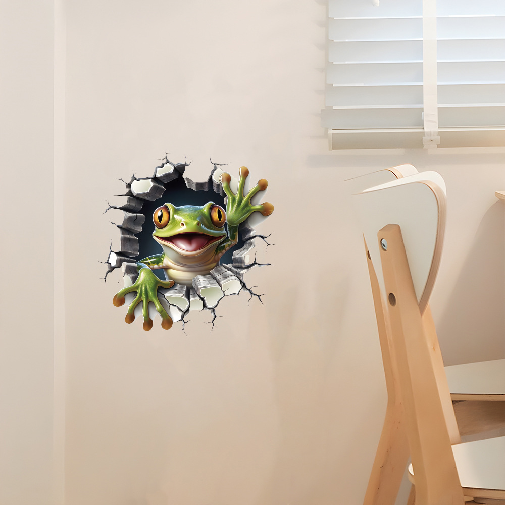 만화 3D 깨진 창 스테레오 귀여운 개구리 화장실 화장실 커버 스티커 PVC 자체 접착 화장실 벽 스티커스토어 가기