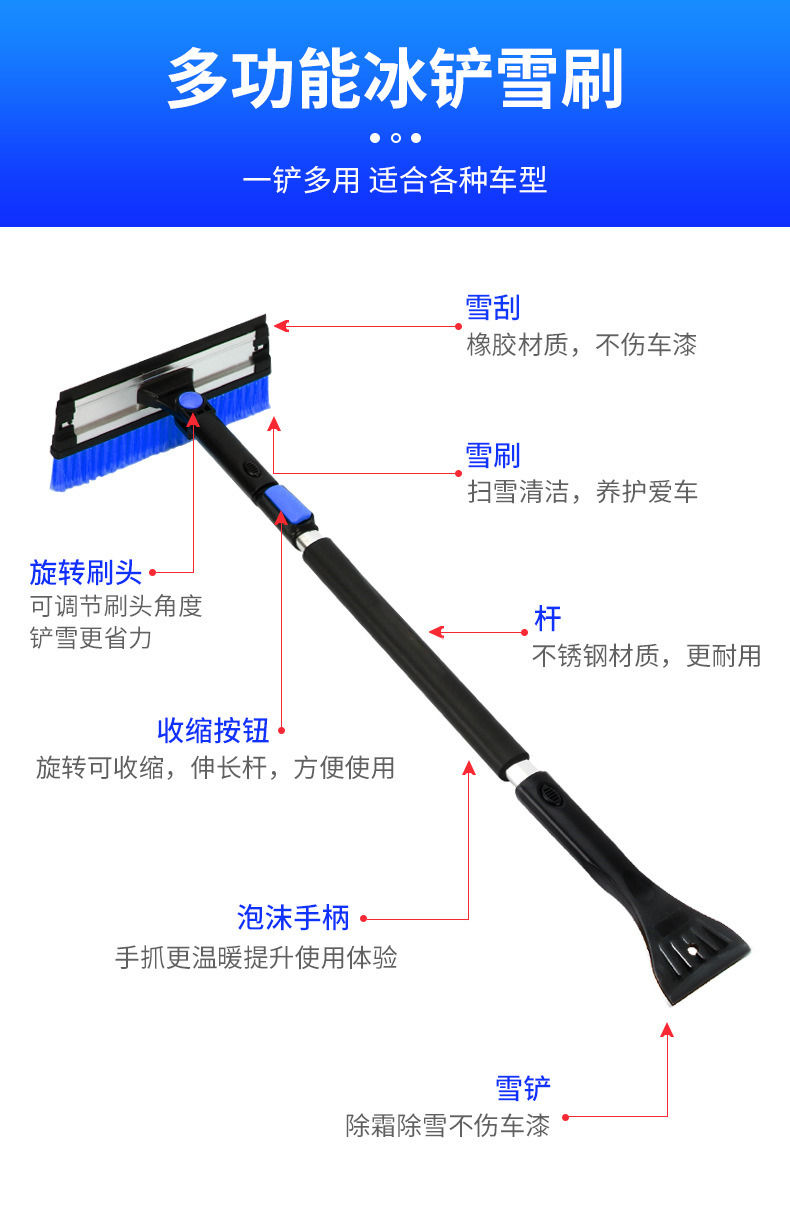자동차 눈 삽 자동차 눈 스크레이퍼 눈 스위퍼 서리 브러시 겨울 다기능 유리 눈 청소 도구스토어 가기