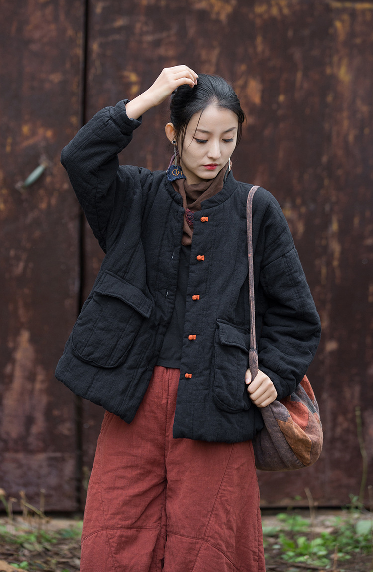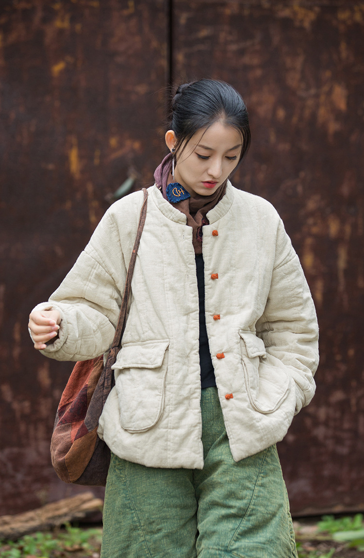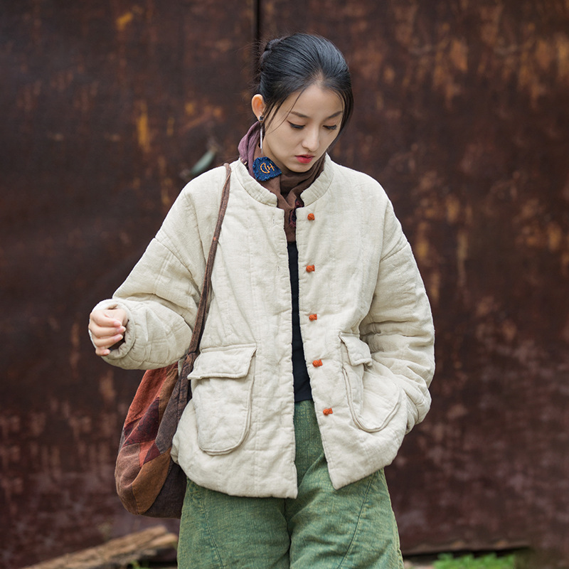 2025 겨울 여성복 신상품, 모시 누빔 보온 코튼 재킷, 개선된 단추 디자인의 스탠드 칼라, 다용도 여성용 숏 코튼 재킷