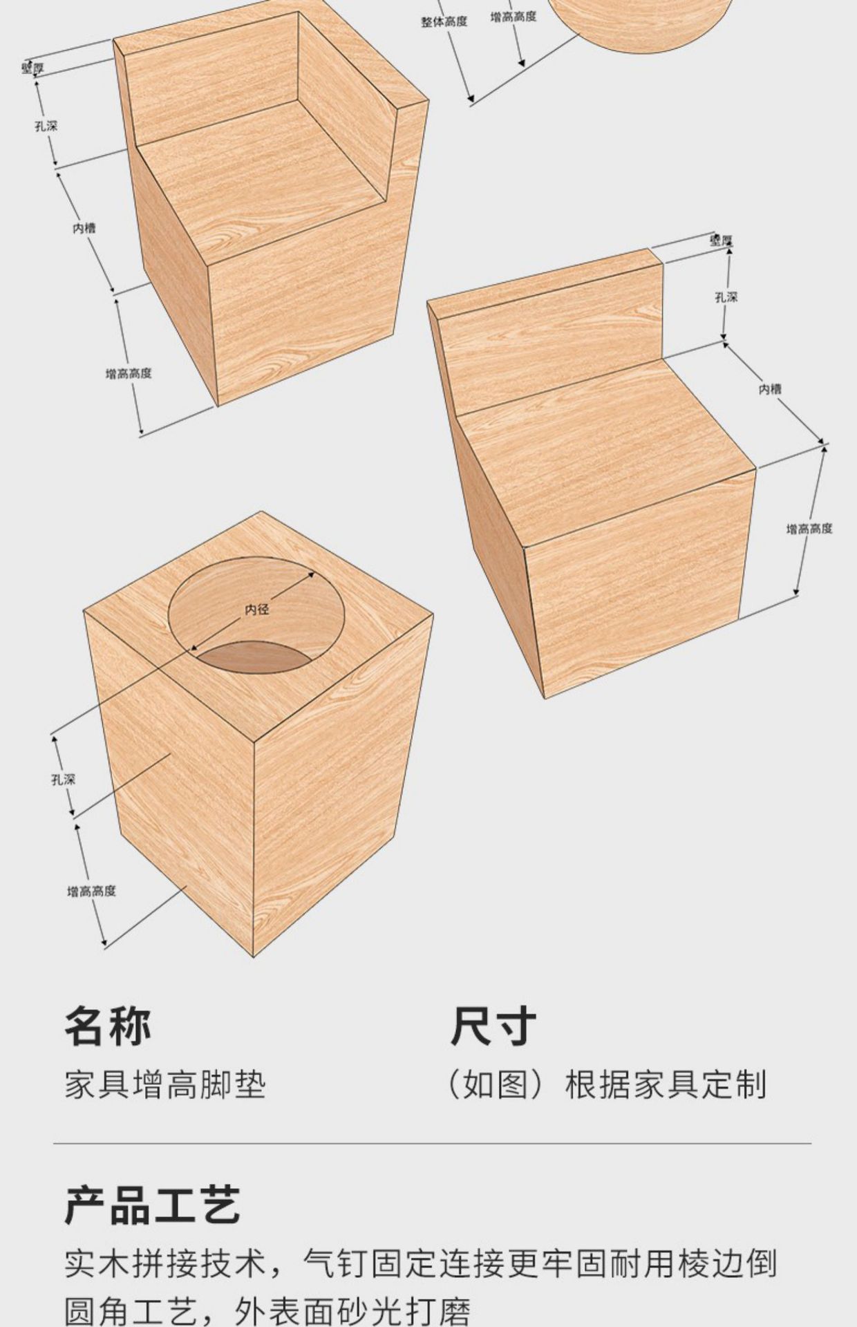 테이블 다리 패드 높은 침대 발 패드 나무 블록 지원 발 단단한 나무 소파 발 패드 침대 다리 내각 발 높은 가구 승진