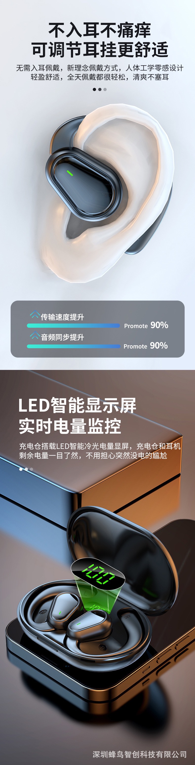 새로운 OWS 오픈 비 귀 무선 디지털 디스플레이 블루투스 긴 배터리 수명 고통없는 블루투스 헤드셋 스포츠 헤드셋
