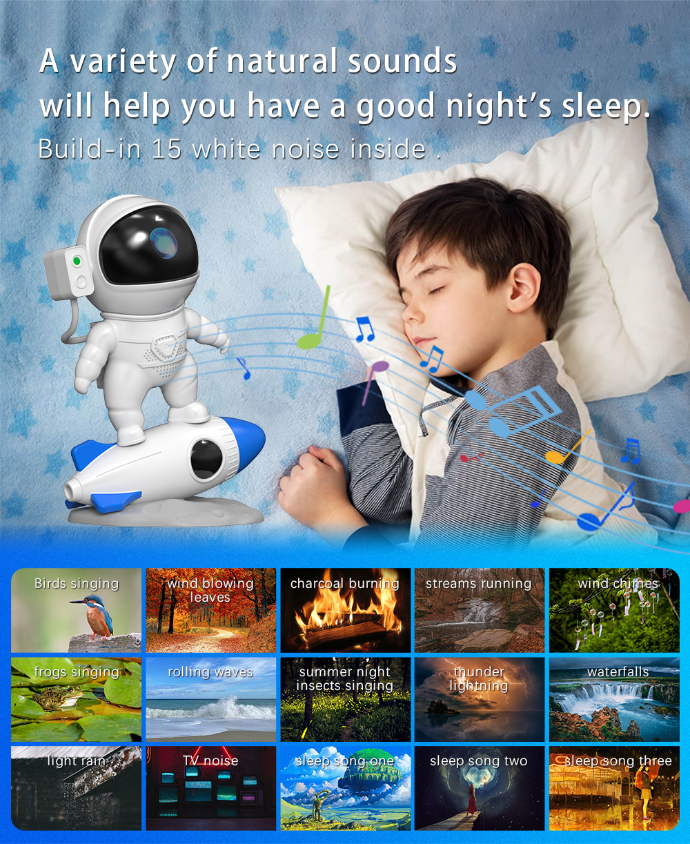 2025 국경 간 로켓 우주 비행사 별이 빛나는 하늘 프로젝션 램프 APP 제어 별이 빛나는 하늘 램프 블루투스 스피커 분위기 야간 조명