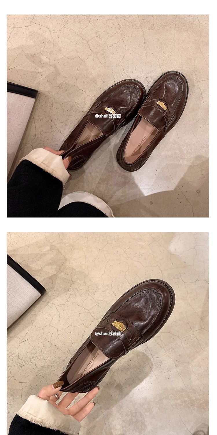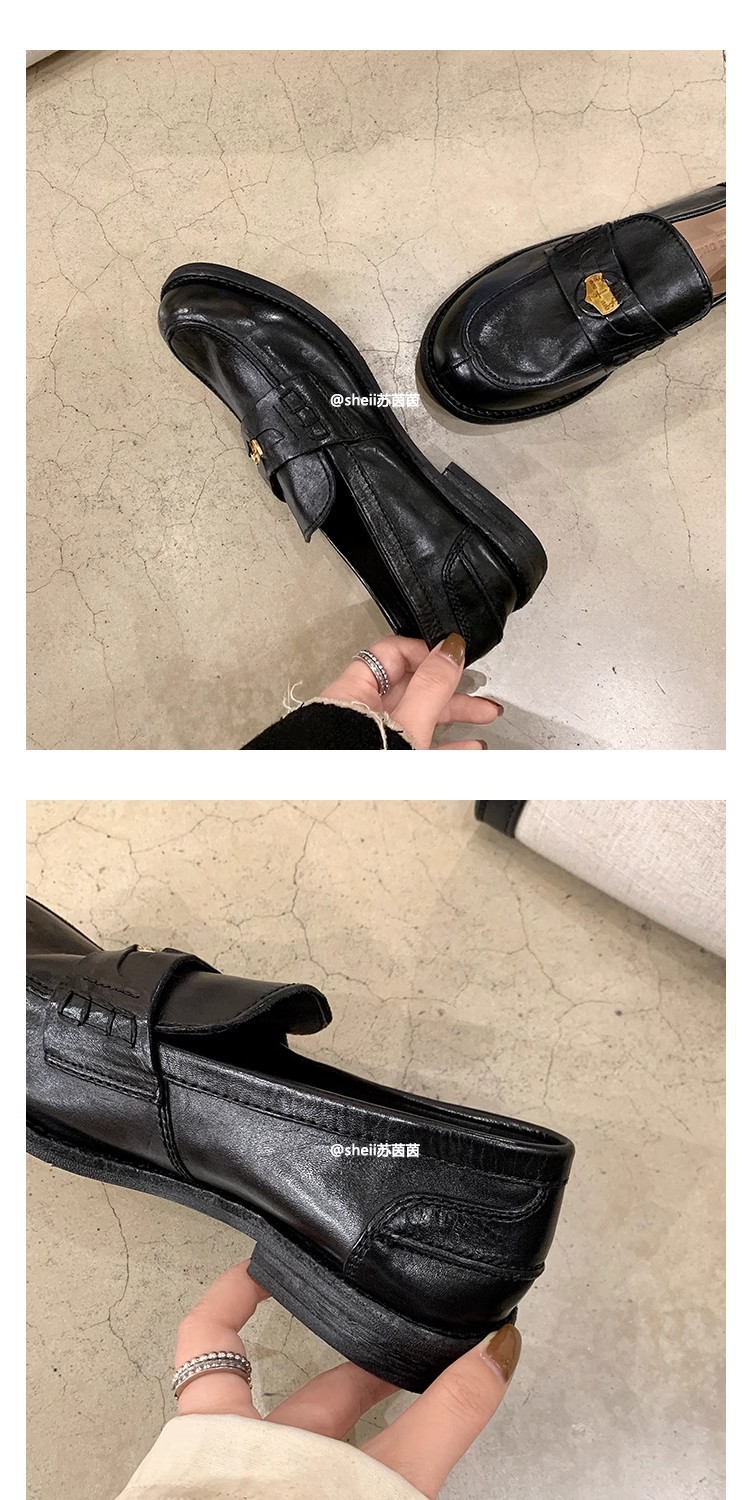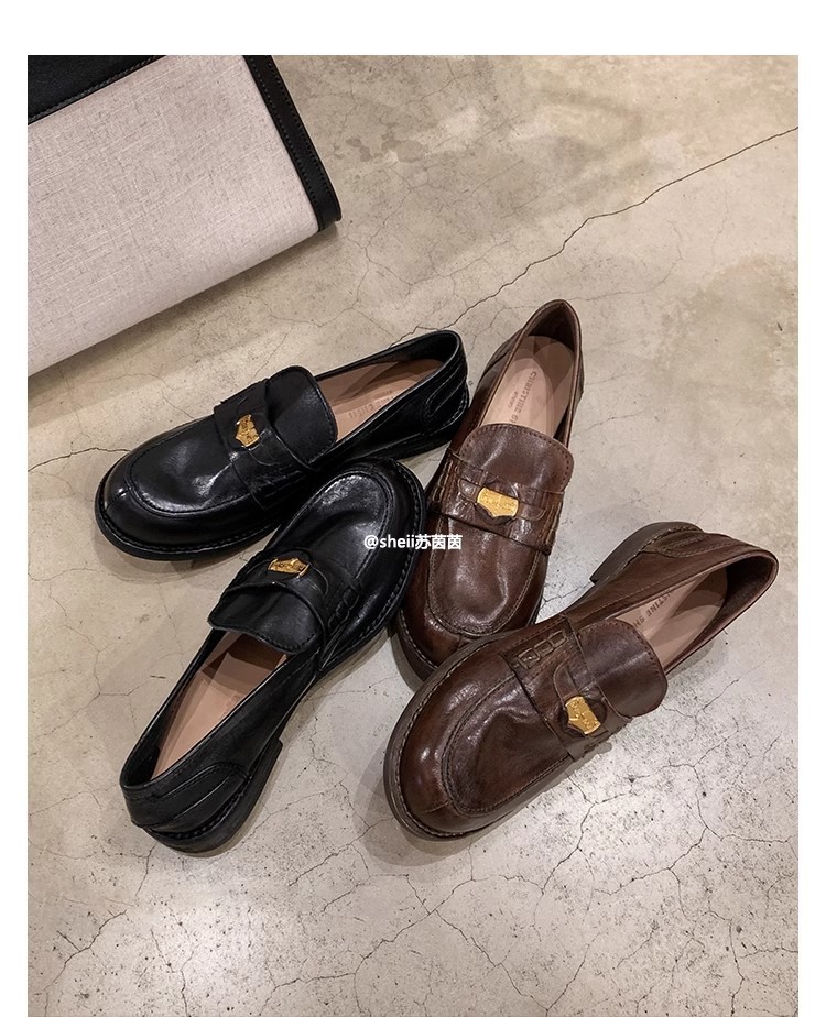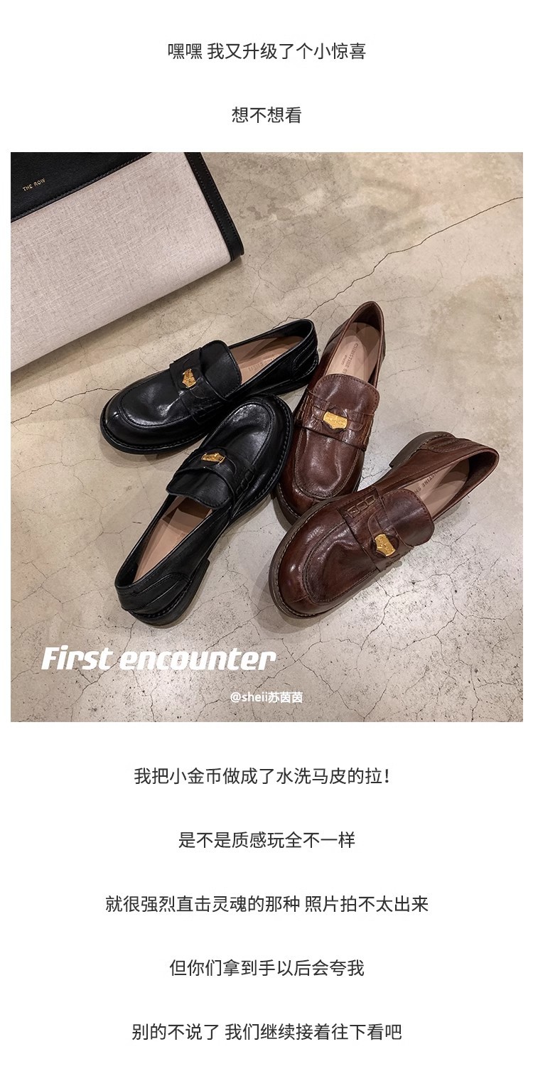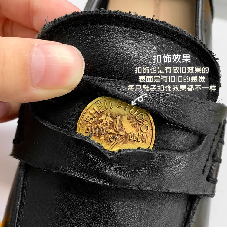 [Sheii su yinyin] 말 가죽 복고풍 광택 색상 작은 금화 로퍼 내부 증가 여성 작은 가죽 신발 스몰 사이즈 32스토어 가기
