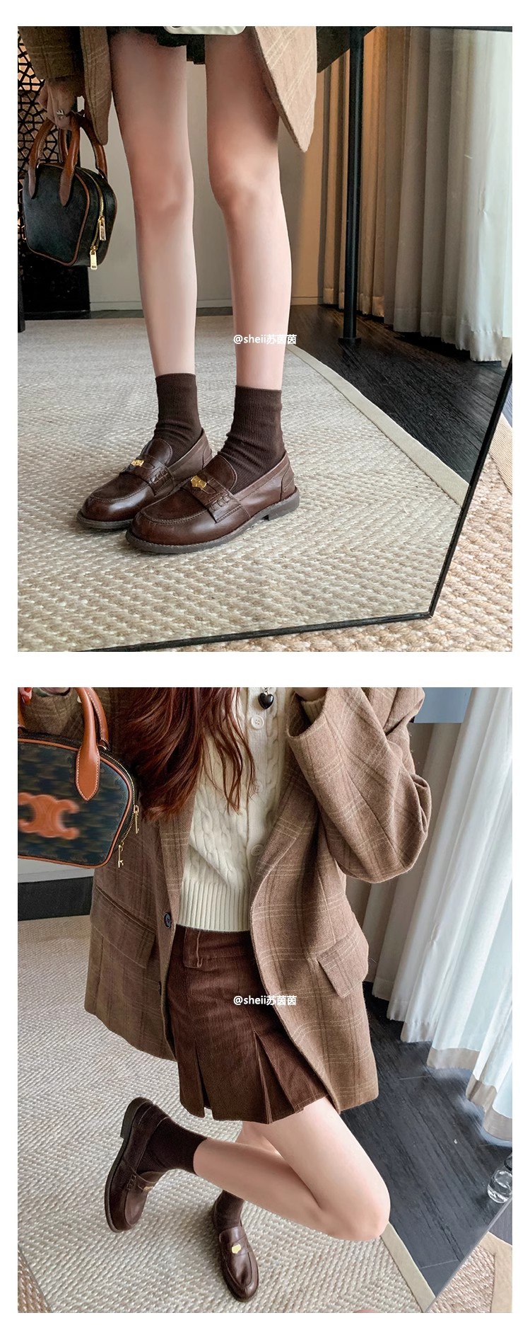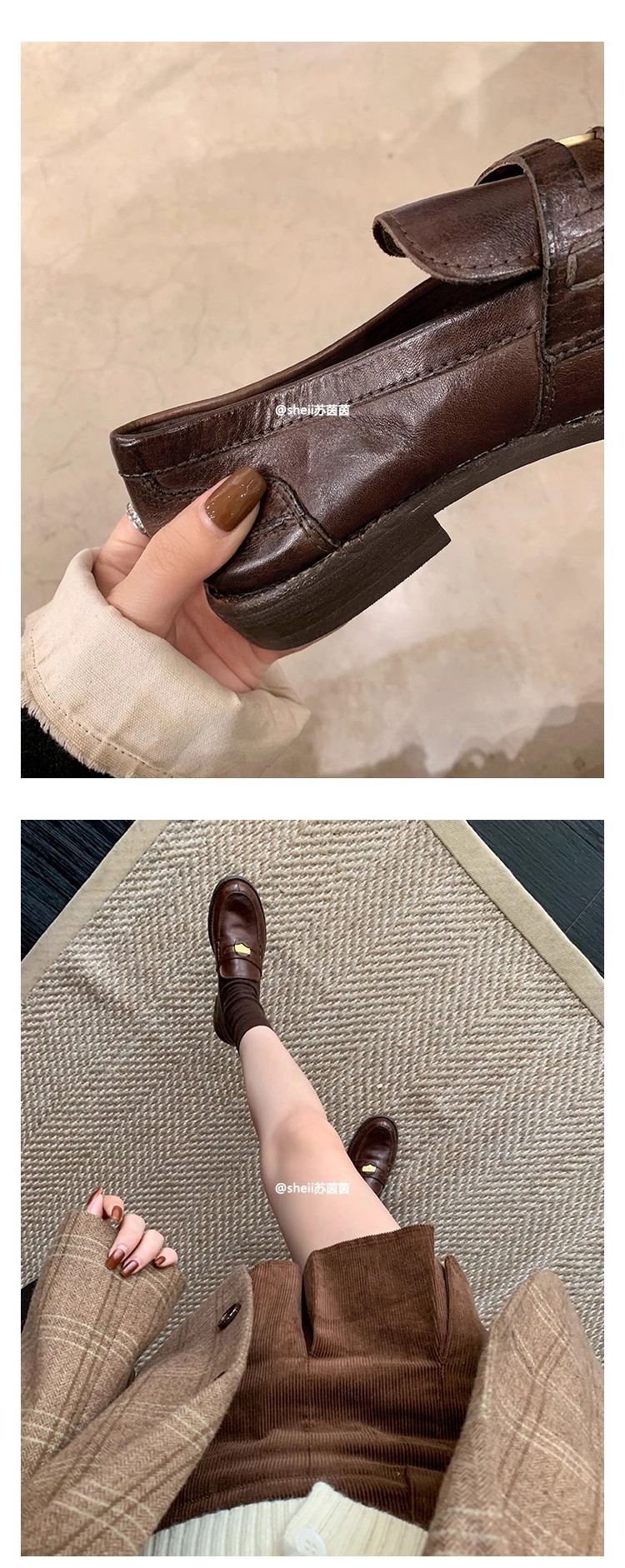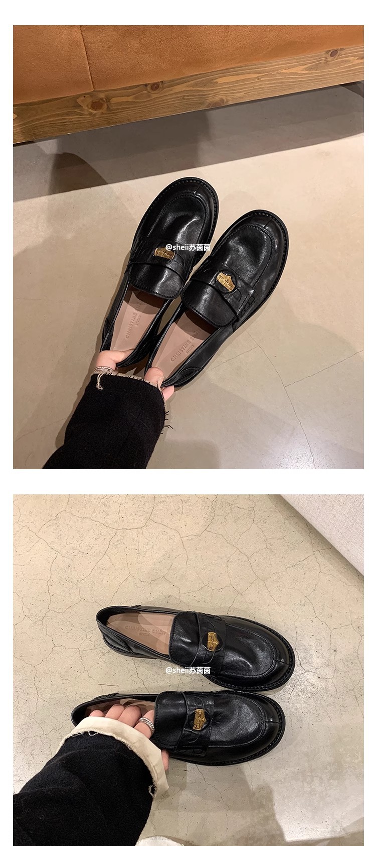 [Sheii su yinyin] 말 가죽 복고풍 광택 색상 작은 금화 로퍼 내부 증가 여성 작은 가죽 신발 스몰 사이즈 32스토어 가기