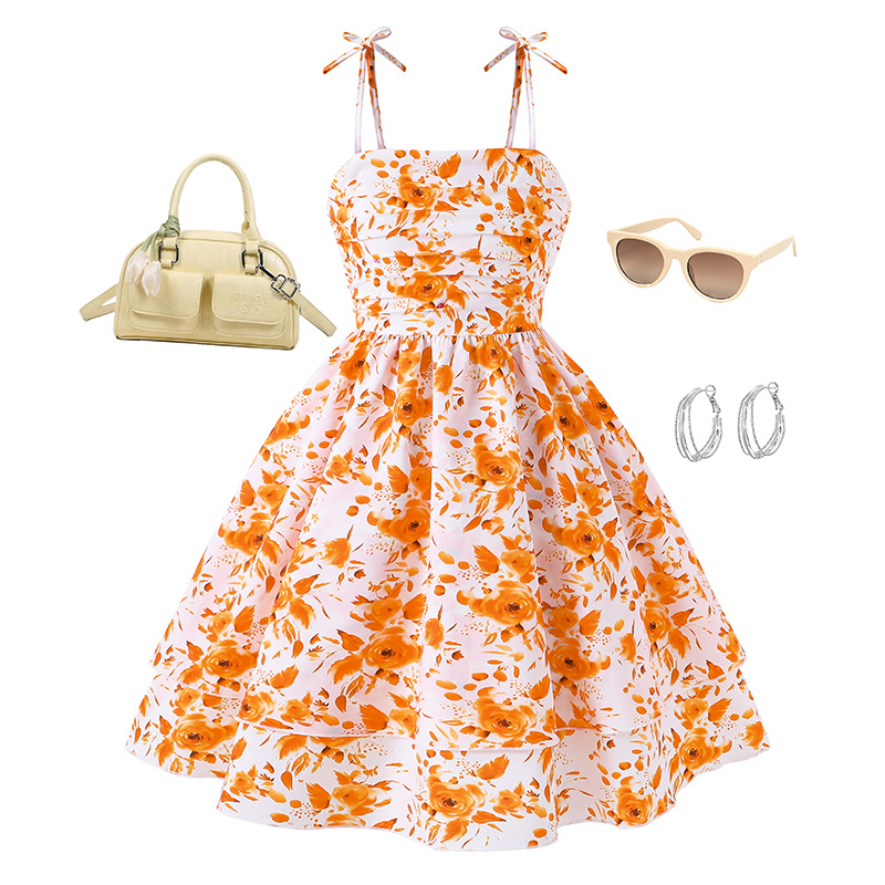 여아 드레스, 해외 아동복, 2026 유럽 및 미국 봄 여름 아마존 인기 상품, 스트랩 프린세스 미니 드레스