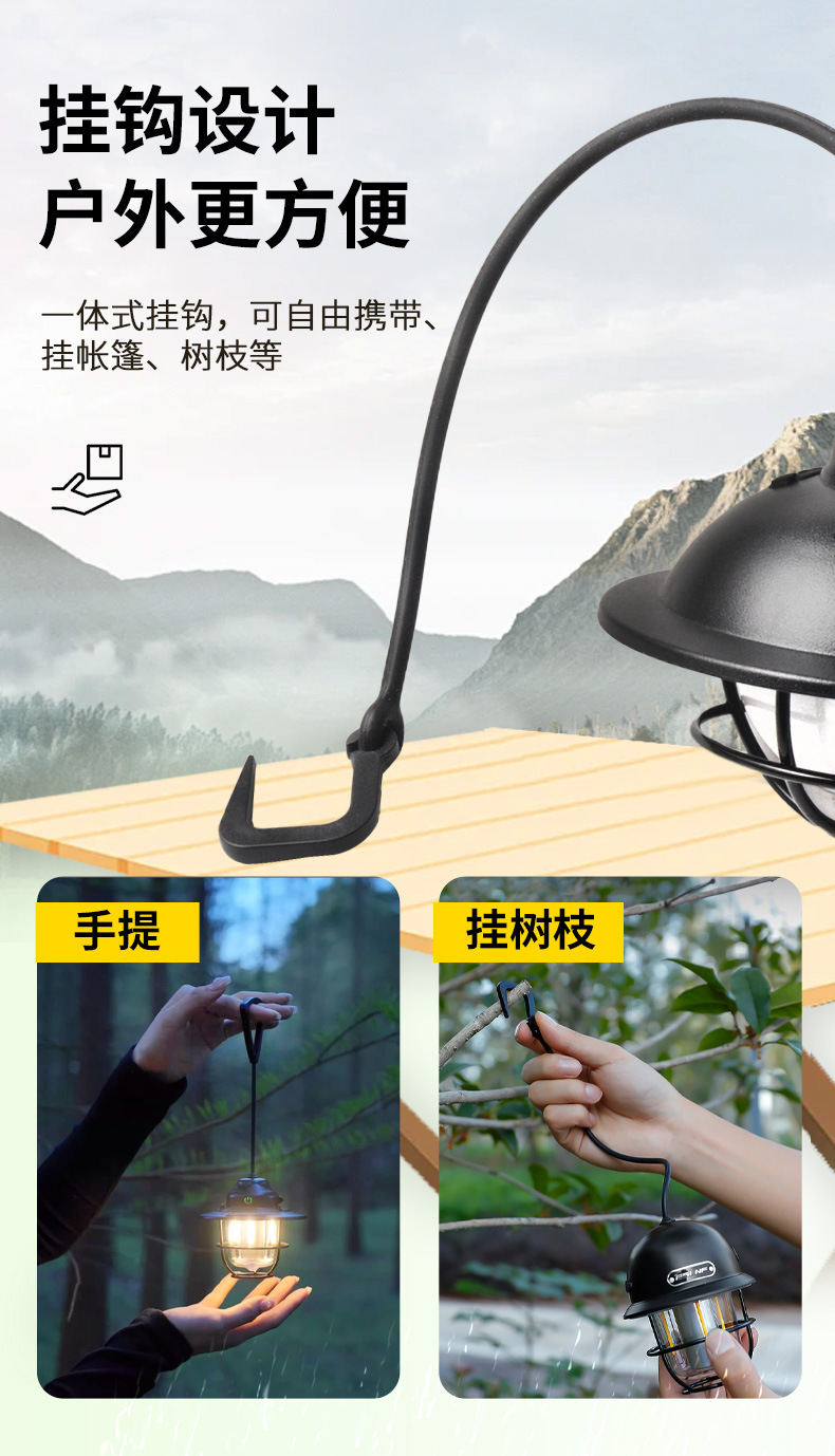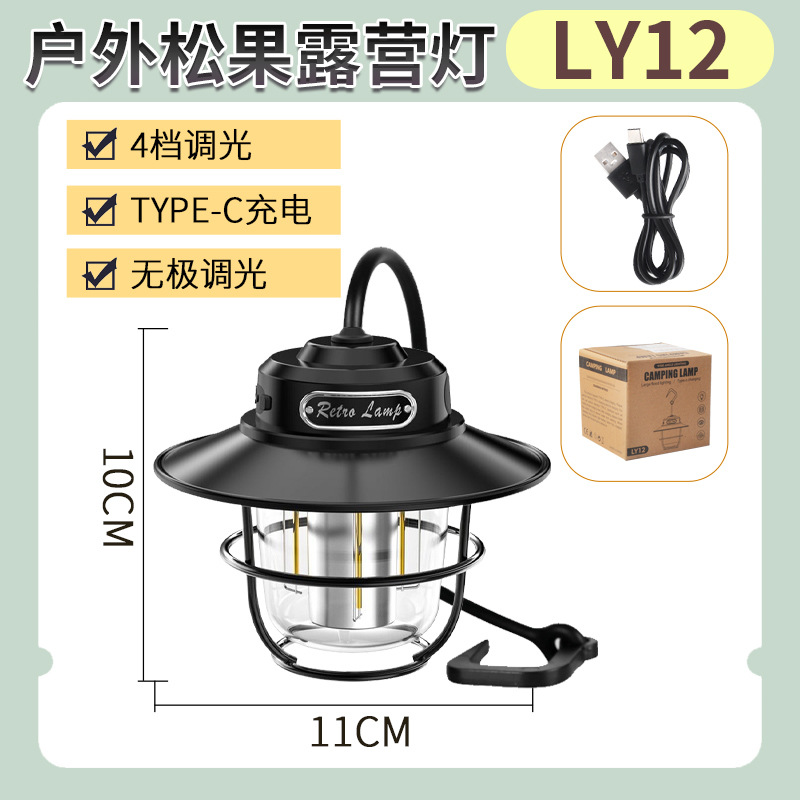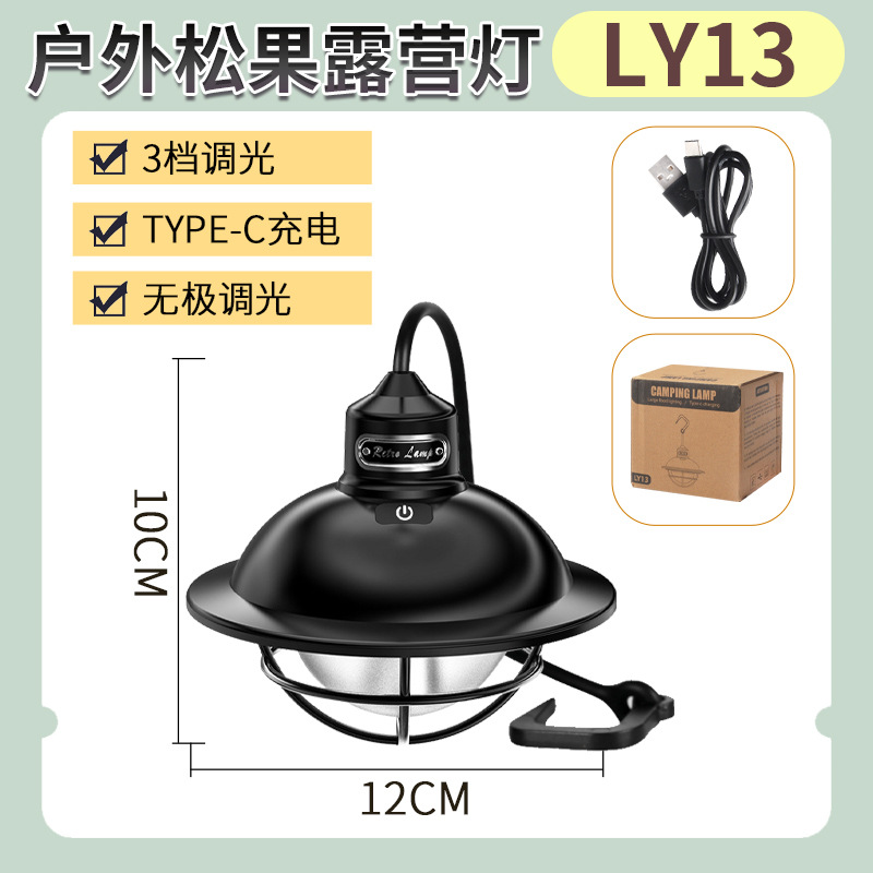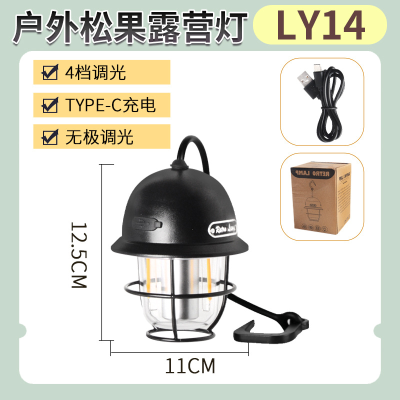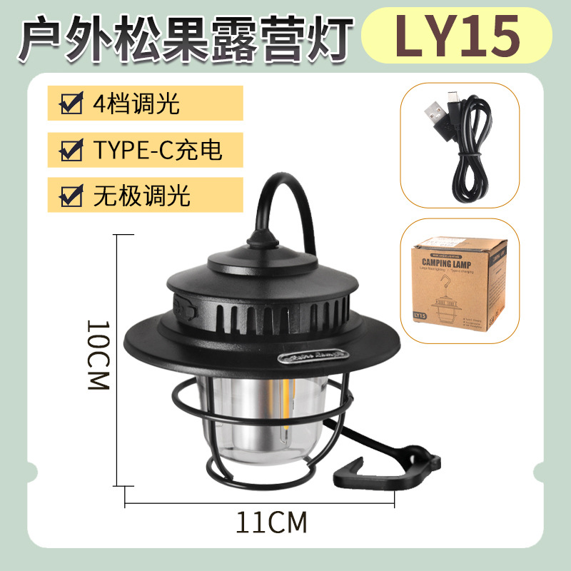 야외 캠핑 텐트 무단 디밍 미니 소나무 라이트 캠프 분위기 조명 매달린 조명 충전식 조명
