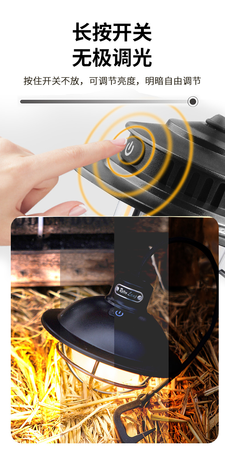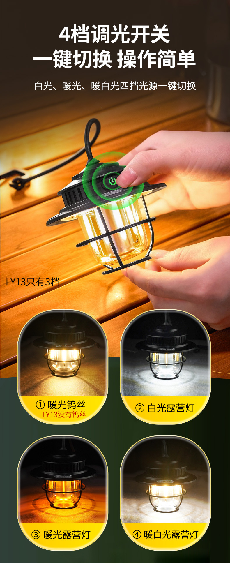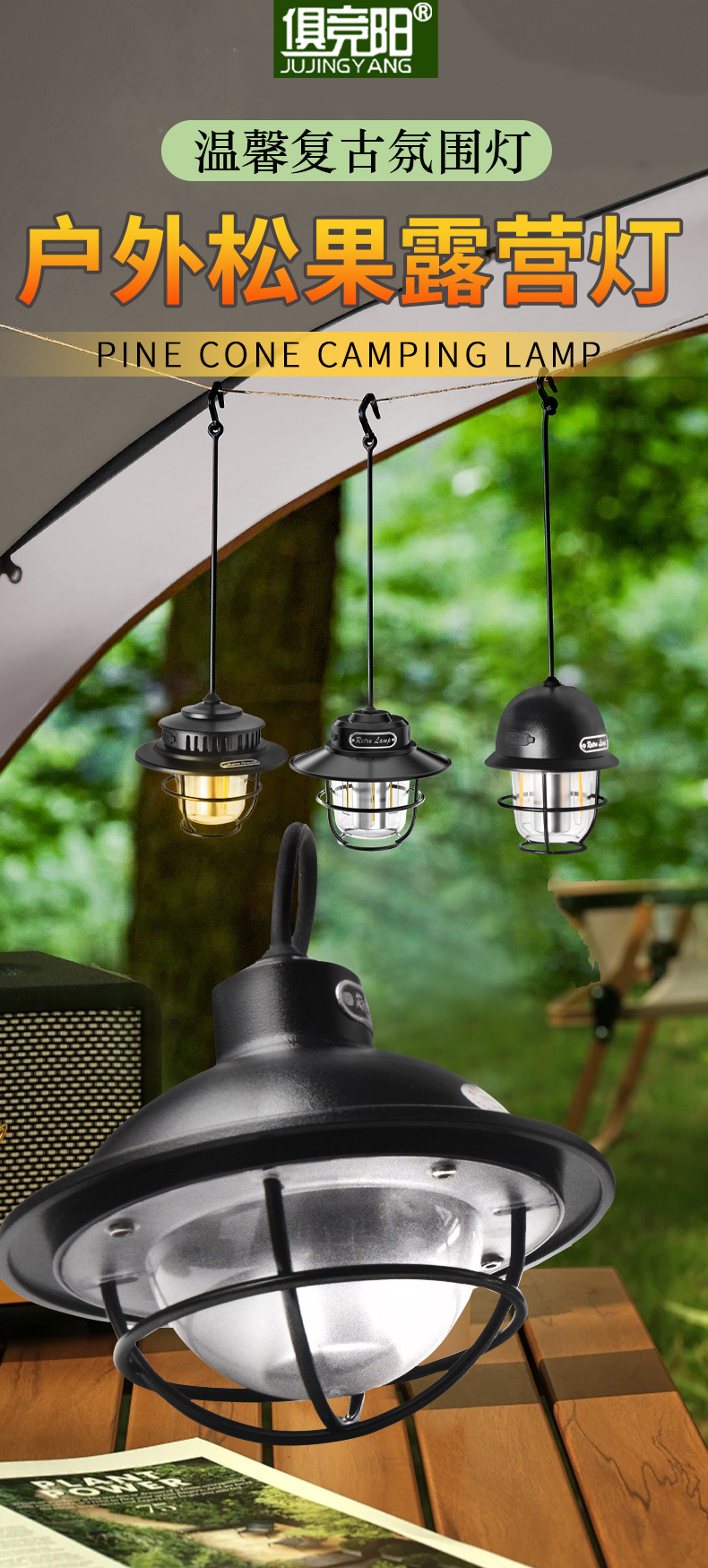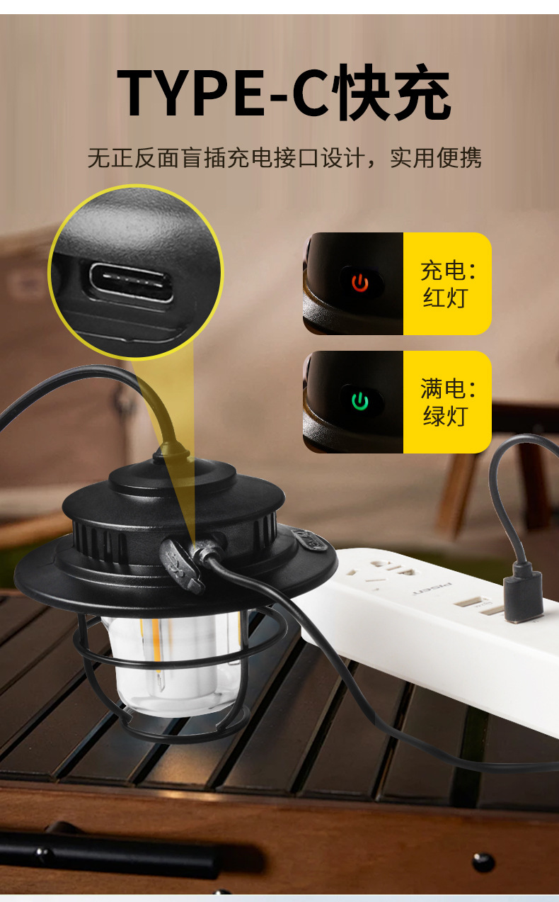 야외 캠핑 텐트 무단 디밍 미니 소나무 라이트 캠프 분위기 조명 매달린 조명 충전식 조명