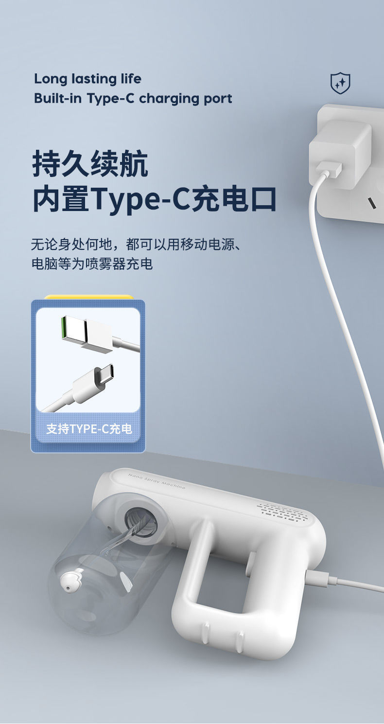 전염병 예방 휴대용 알코올 소독 총 분무기 USB 충전 나노 84 공기 청정기