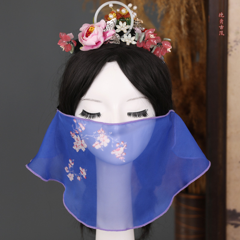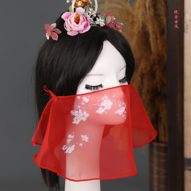 쇼 오프 베일 페이스 커튼 매달려 귀 커버 얼굴 고대 세트 중국 스타일 술 한푸 액세서리 올 매치 쉬폰 요정스토어 가기