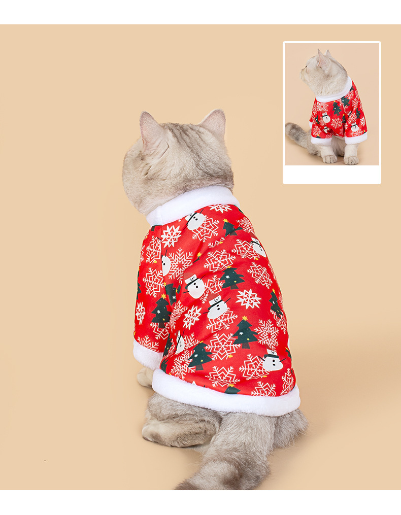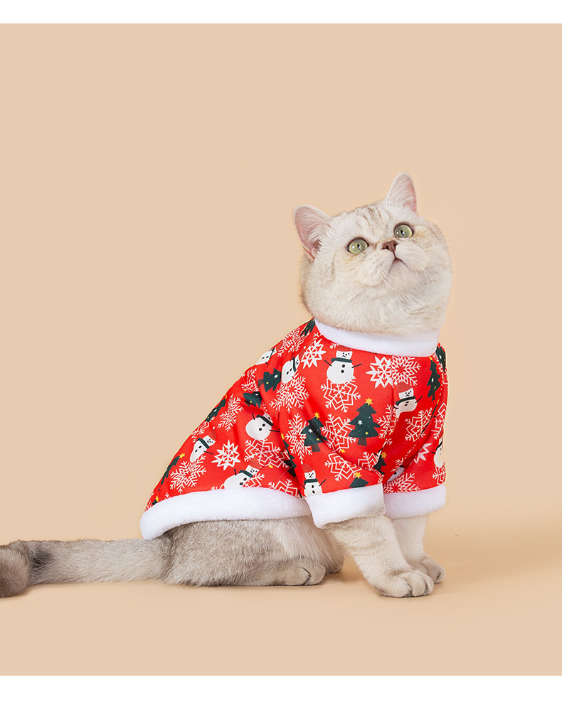 새로운 고양이 겨울 옷 크리스마스 옷 국경 고양이 의류 기모 따뜻한 고양이 크리스마스 옷 재고 도매스토어 가기